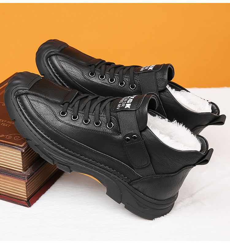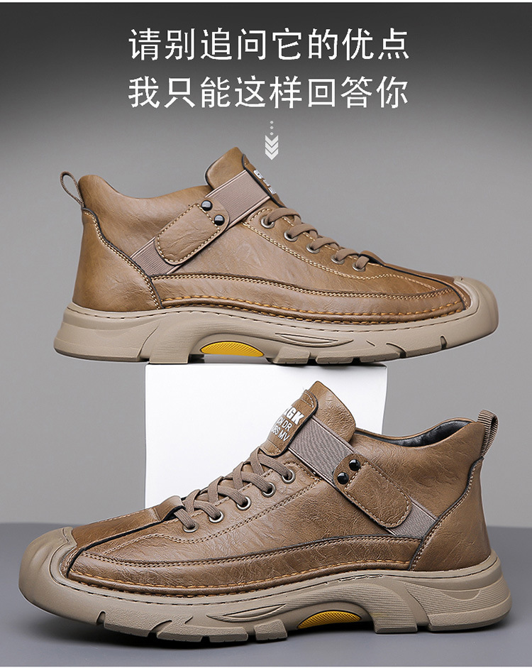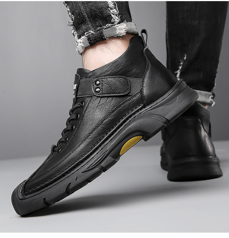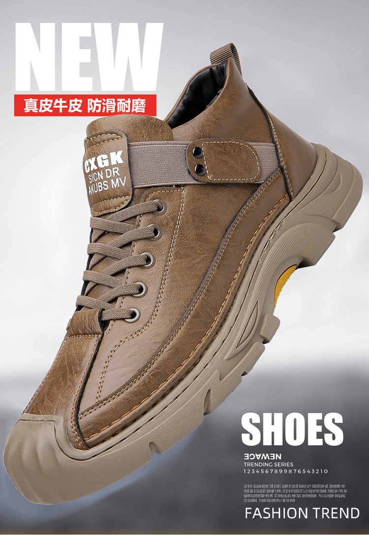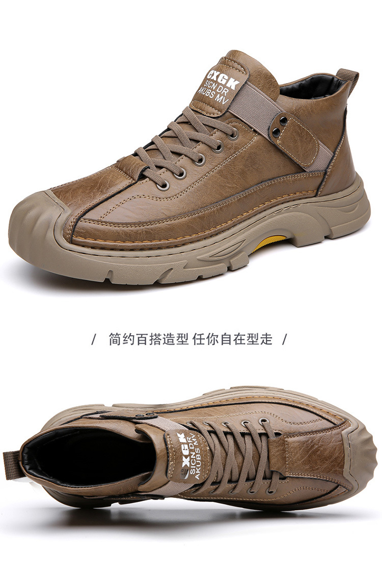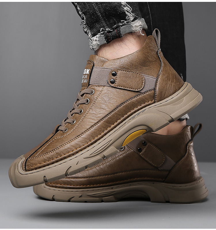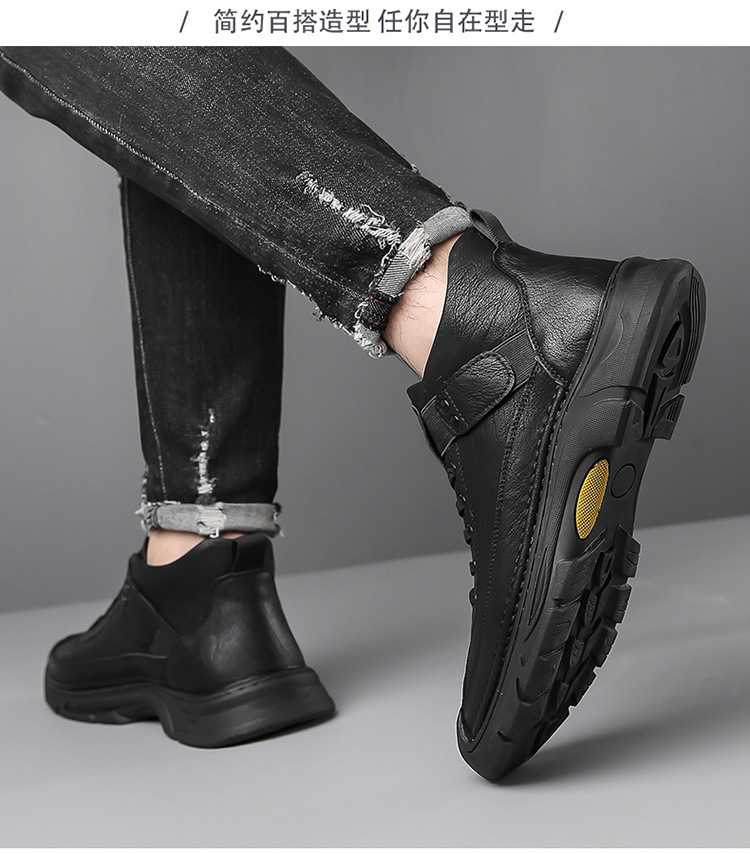 秋冬款男士马丁靴户外徒步厚底高帮鞋牛皮时尚百搭运动休闲鞋批发