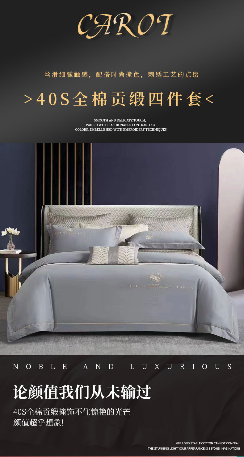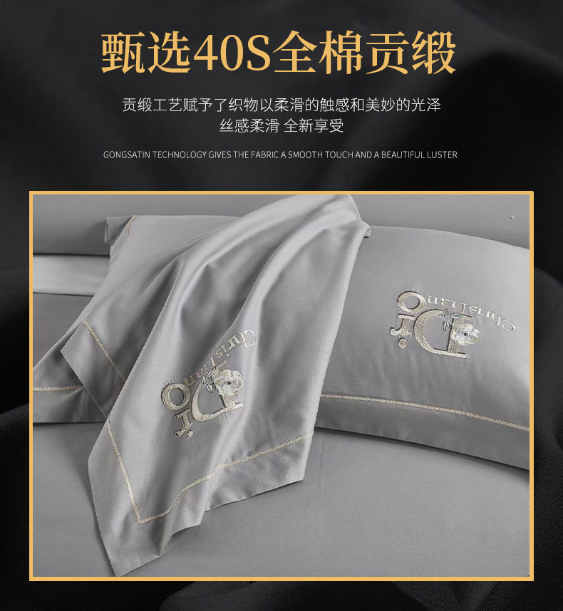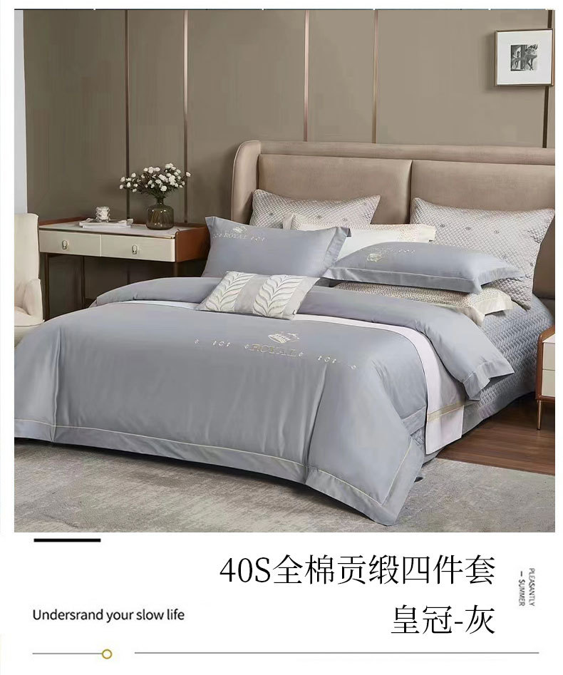厂家批发40支全棉贡缎床盖四件套枕套被套床上多件套床盖式四件套