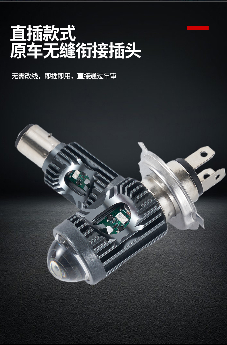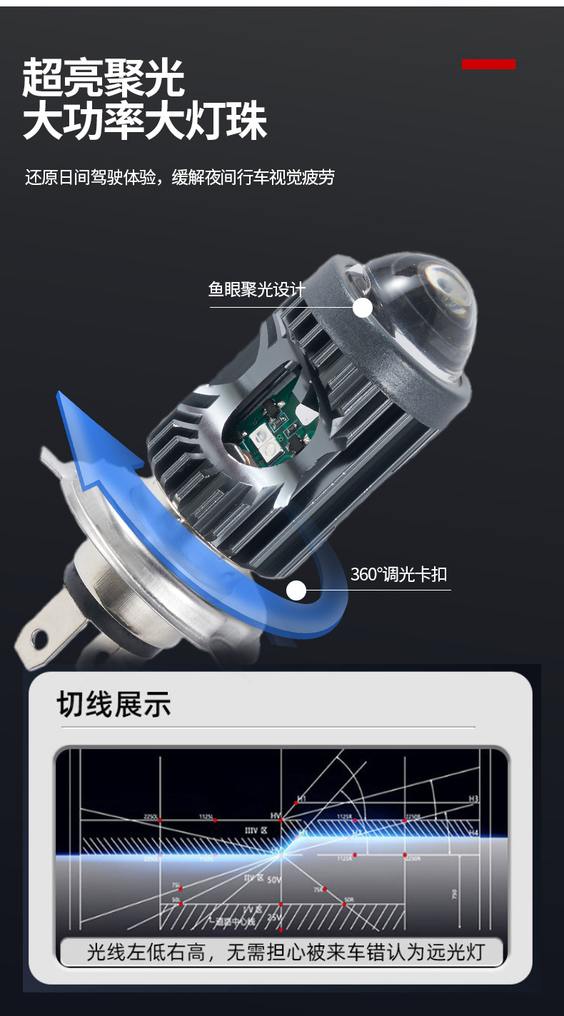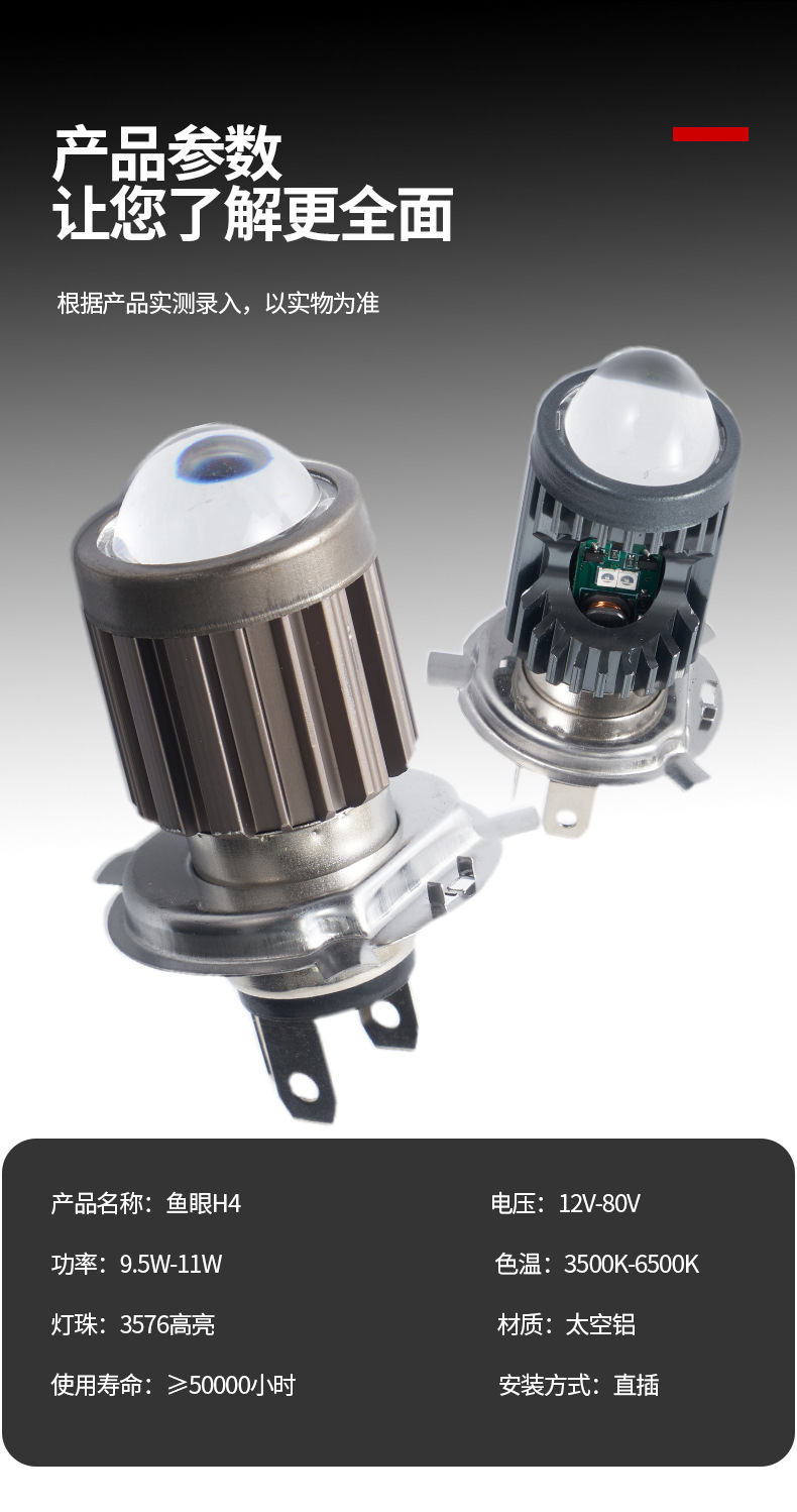 鱼眼H4车灯LED摩托车前照灯3576高亮大透镜远近一体改装射灯批发