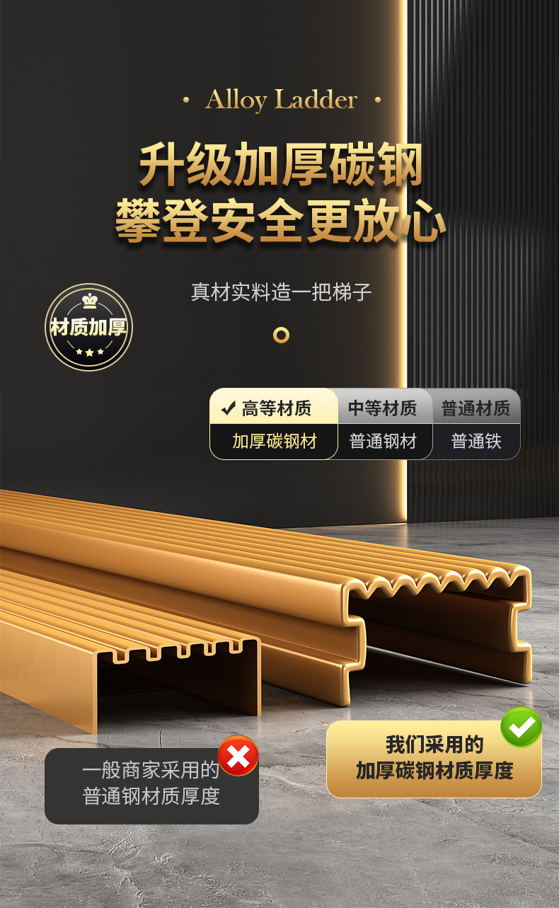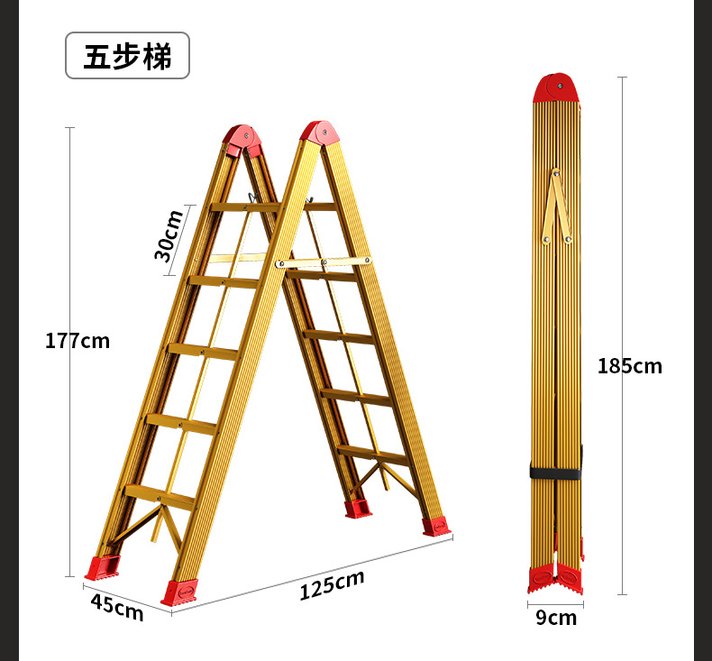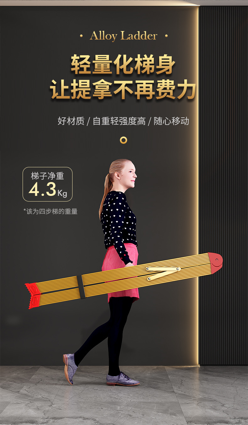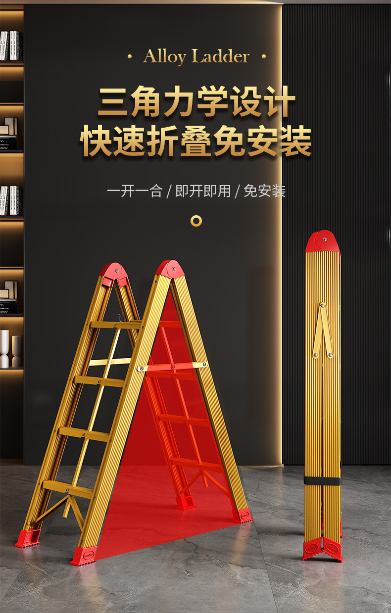 家用可行走人字梯可折叠伸缩碳钢便携工程梯登高安全三四五六步梯