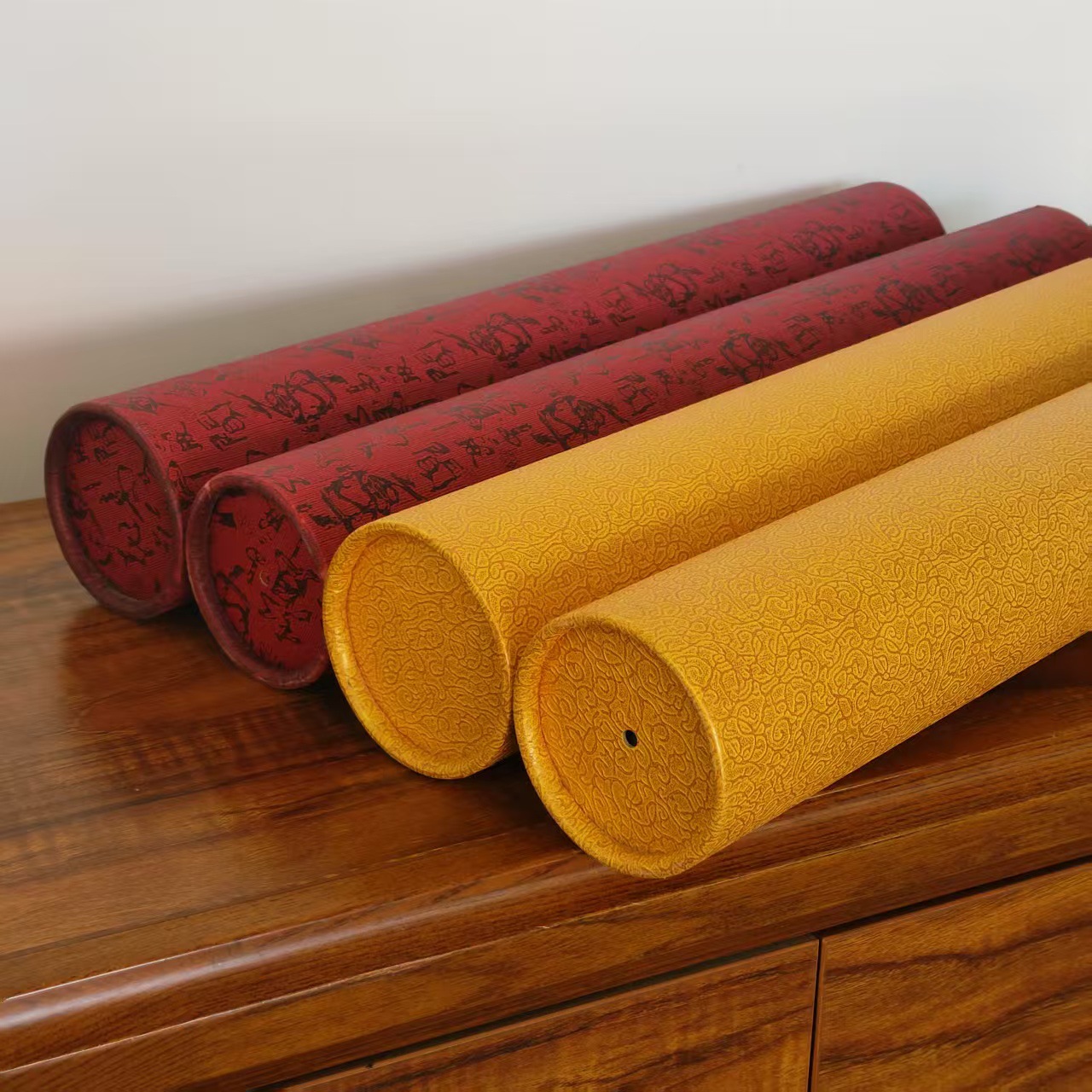 书画纸筒龙纹烫金筒可伸缩字画筒便携式纸筒彩色包装抽拉纸筒现货