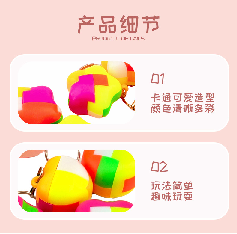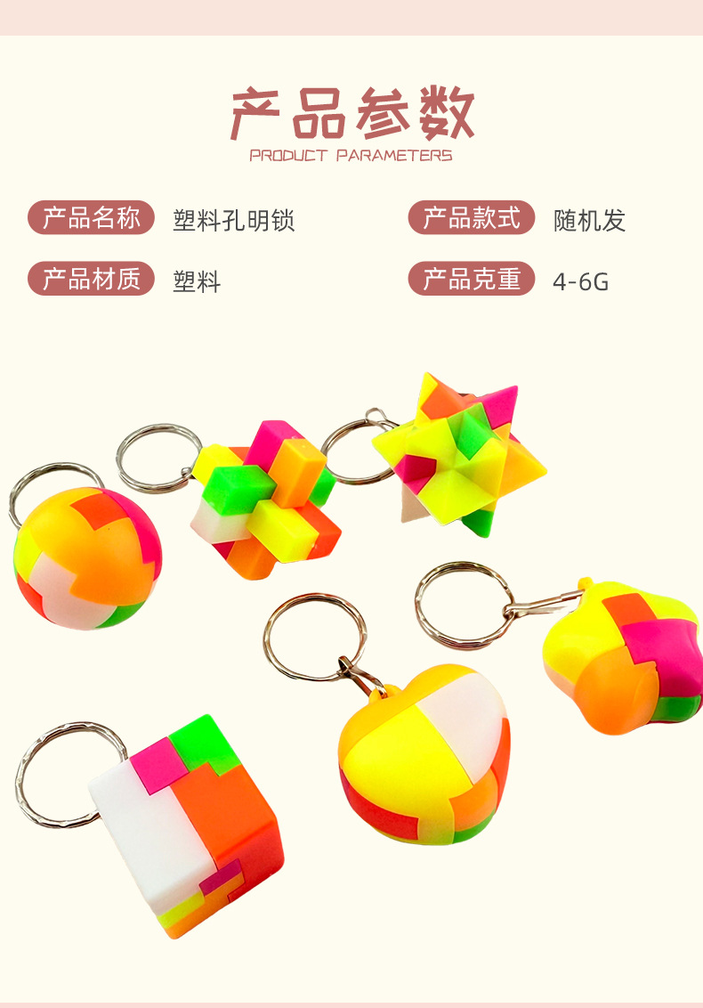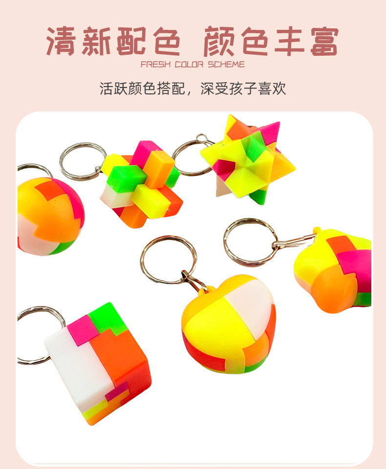 塑料孔明锁心形挂件钥匙扣魔方鲁班锁拼装解锁儿童创意拼插玩具