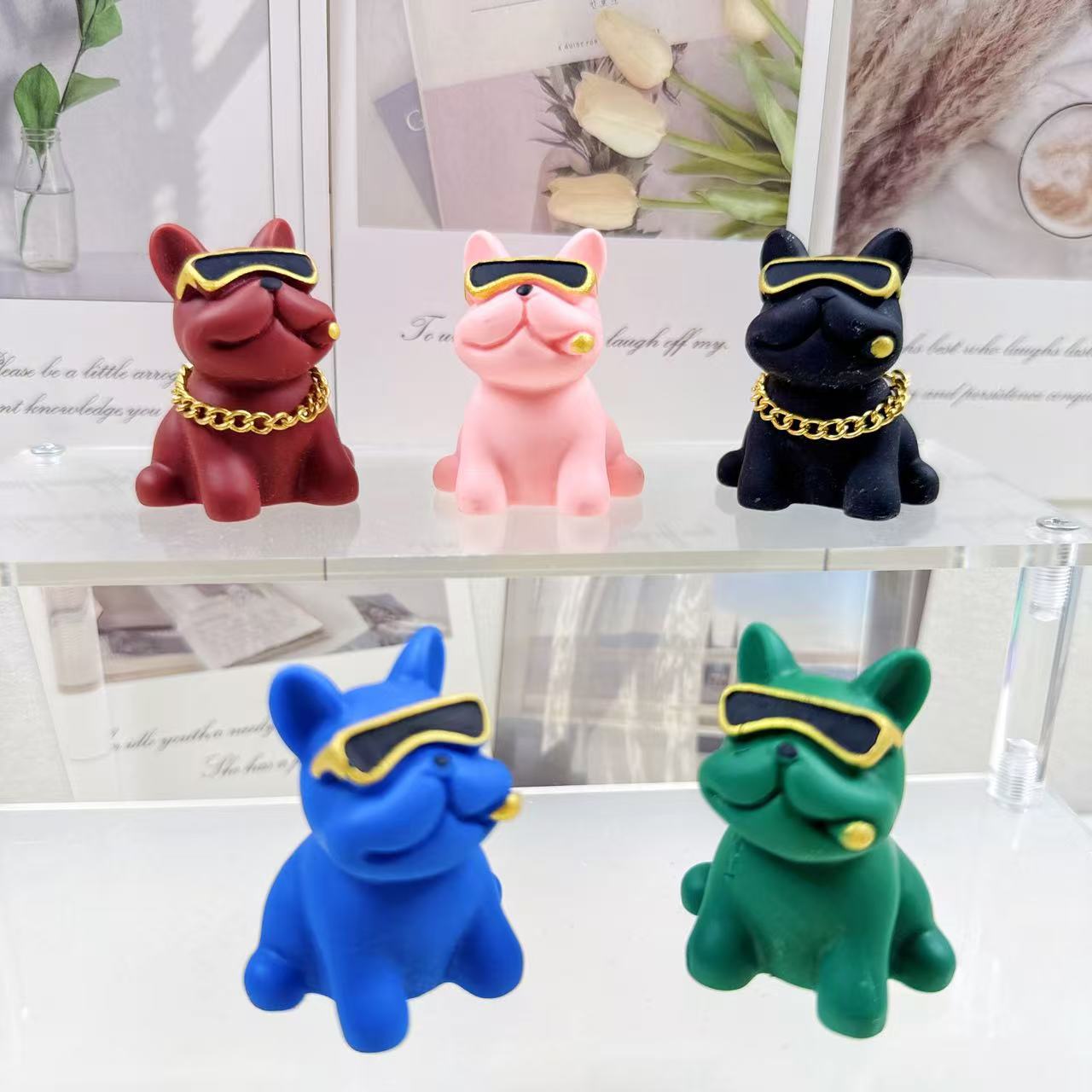 百茂原创潮酷斗牛犬树脂摆件创意潮流墨镜狗车载摆件家居桌面装饰