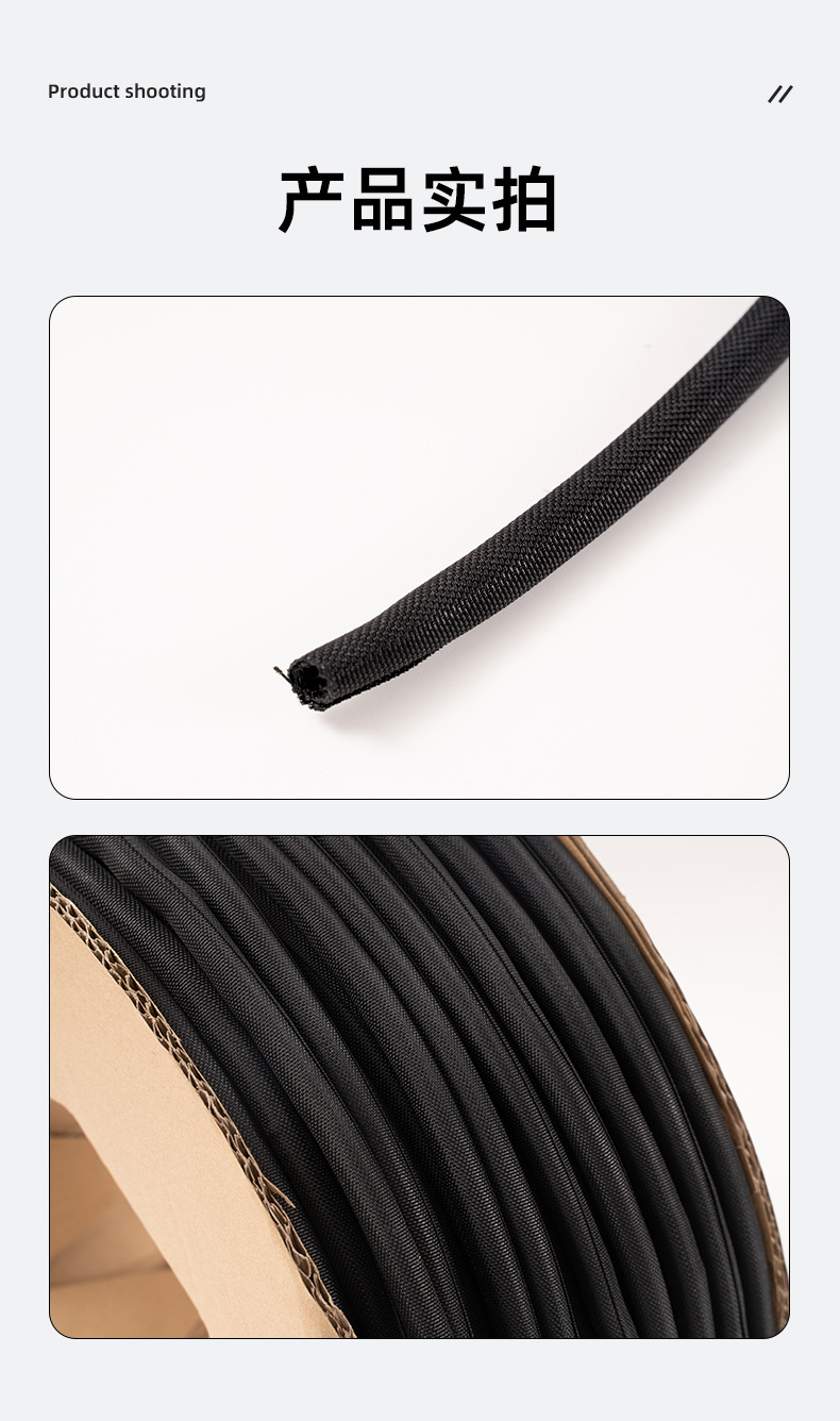 厂家现货自卷式高阻燃套管黑色工业线缆防火耐摩擦自卷式编织套管
