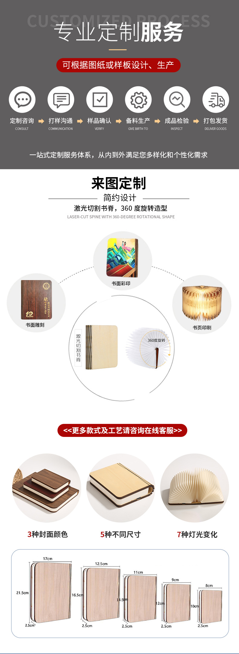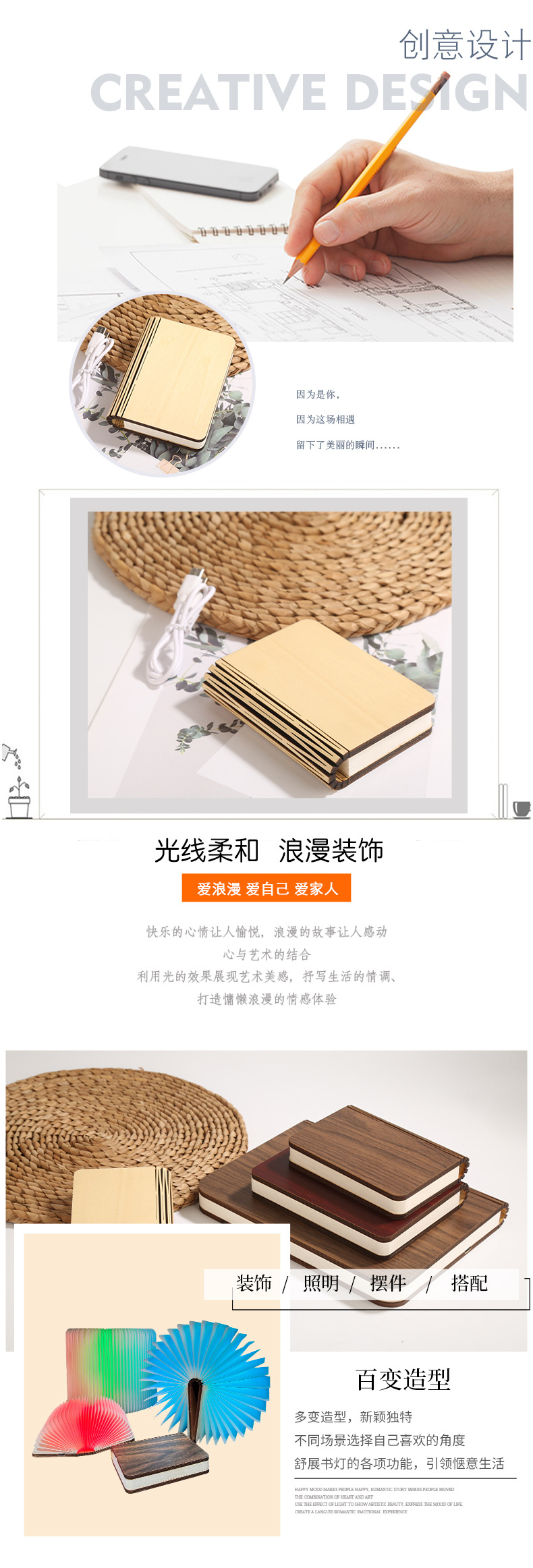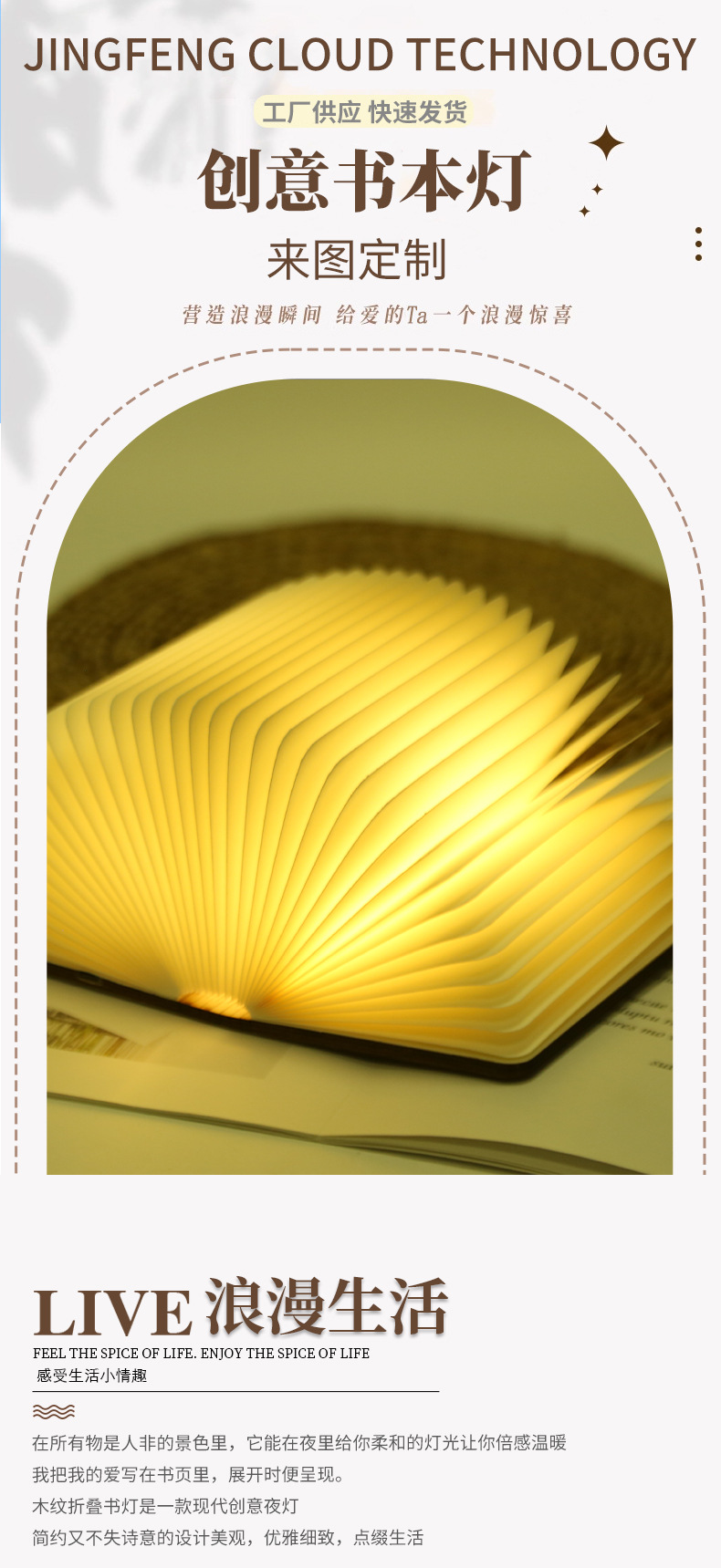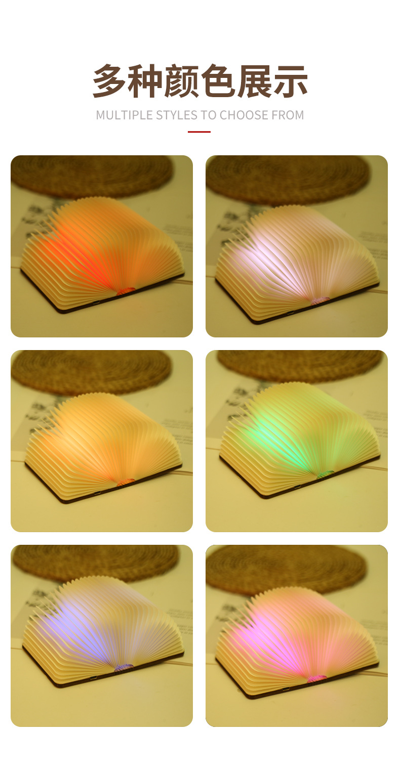 彩色书灯小夜灯书本灯开合调光变色节日礼品客卧室台灯七彩氛围灯