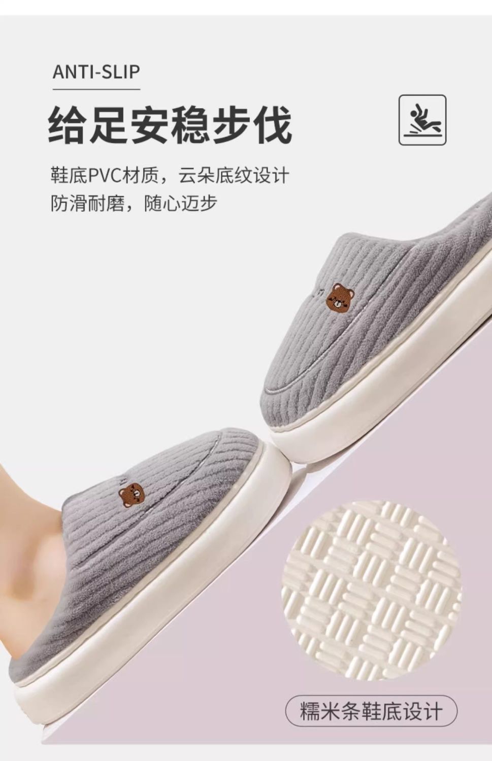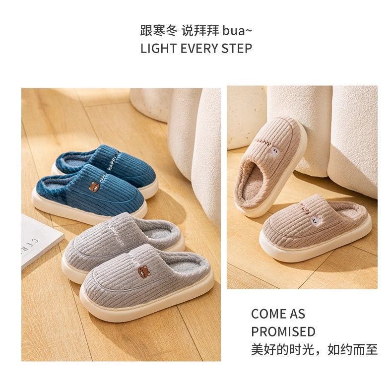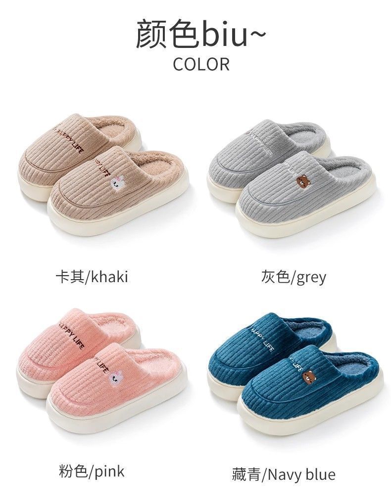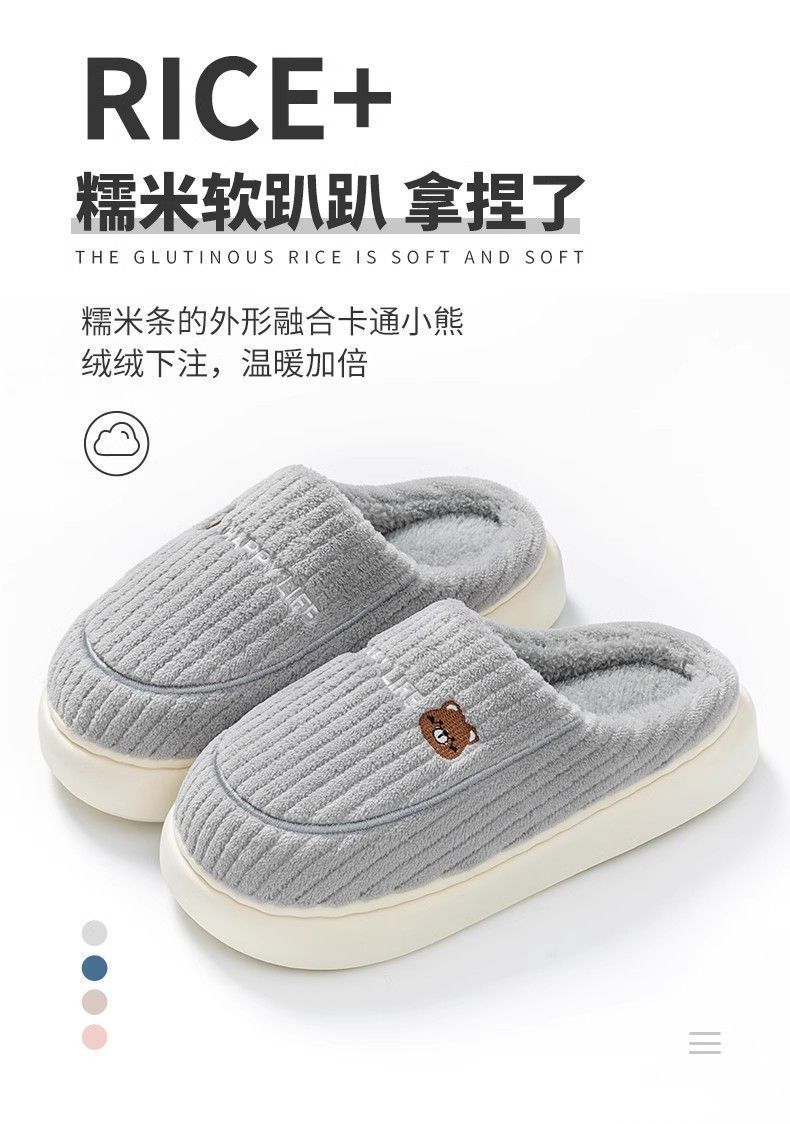 新款踩屎感棉拖鞋男款冬季室内保暖拖鞋女居家加绒毛棉托鞋