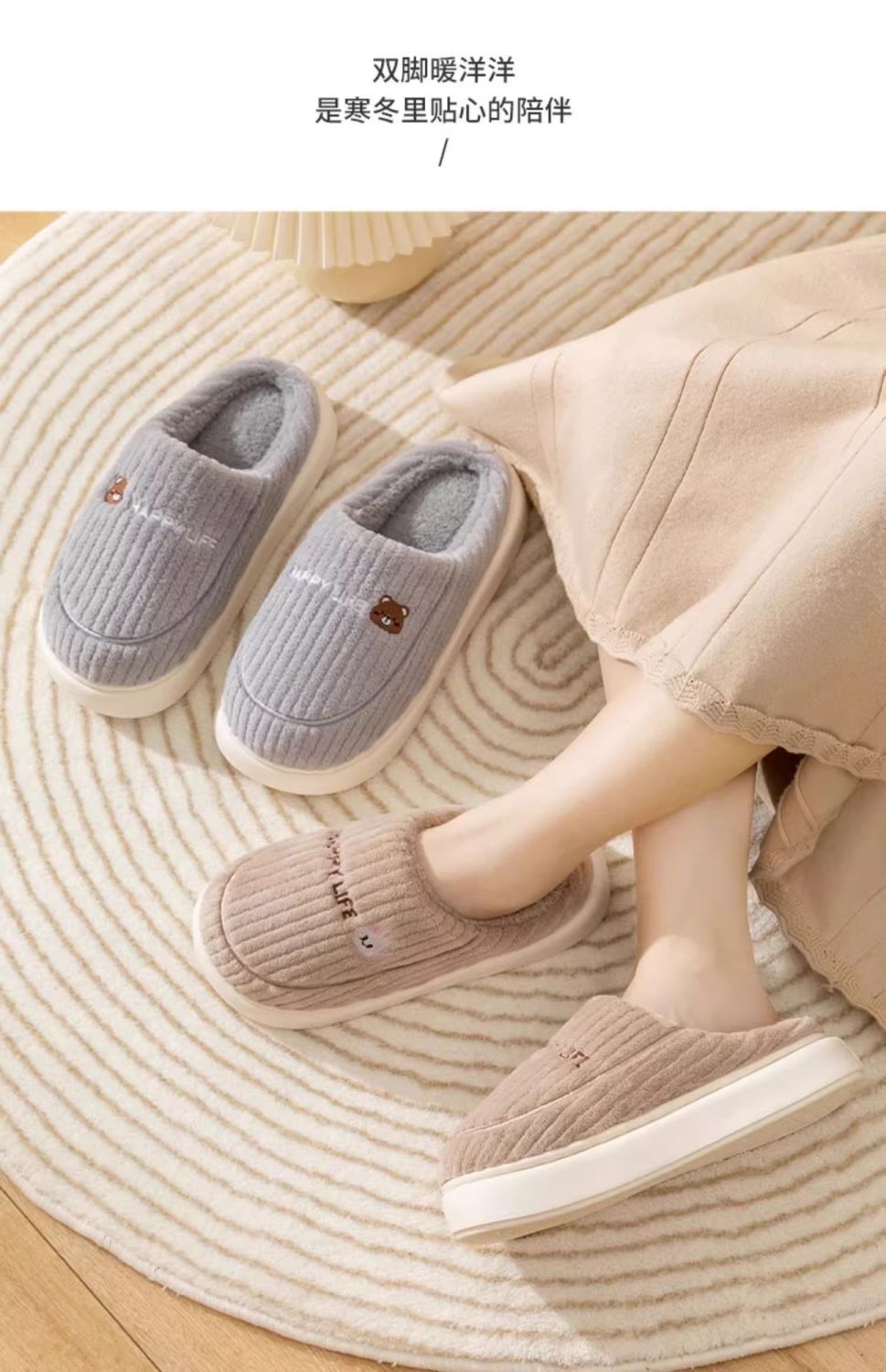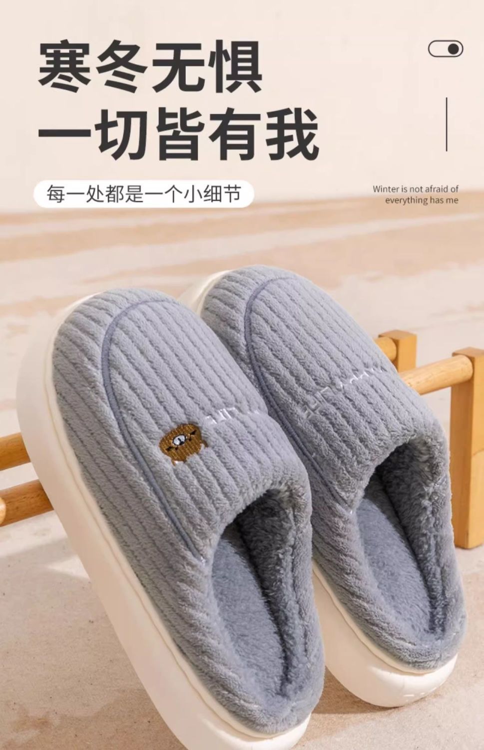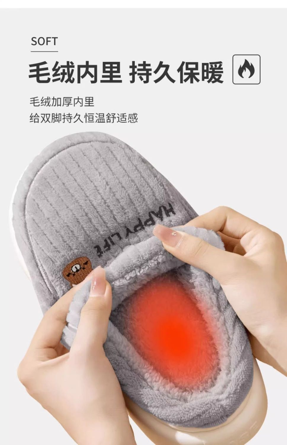 新款踩屎感棉拖鞋男款冬季室内保暖拖鞋女居家加绒毛棉托鞋