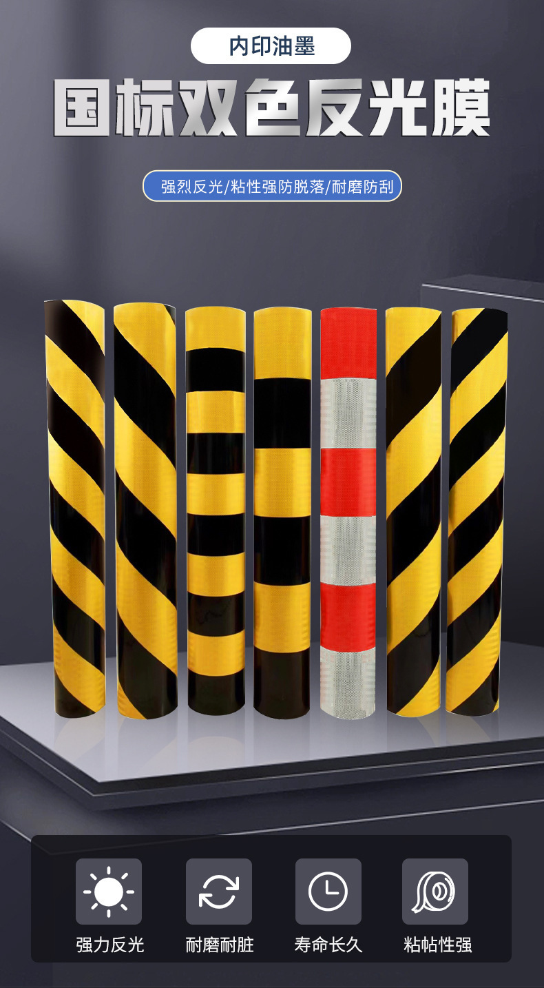 定制国标双色反光膜黄黑相间红白相间公路道路桩高粘性反光材料