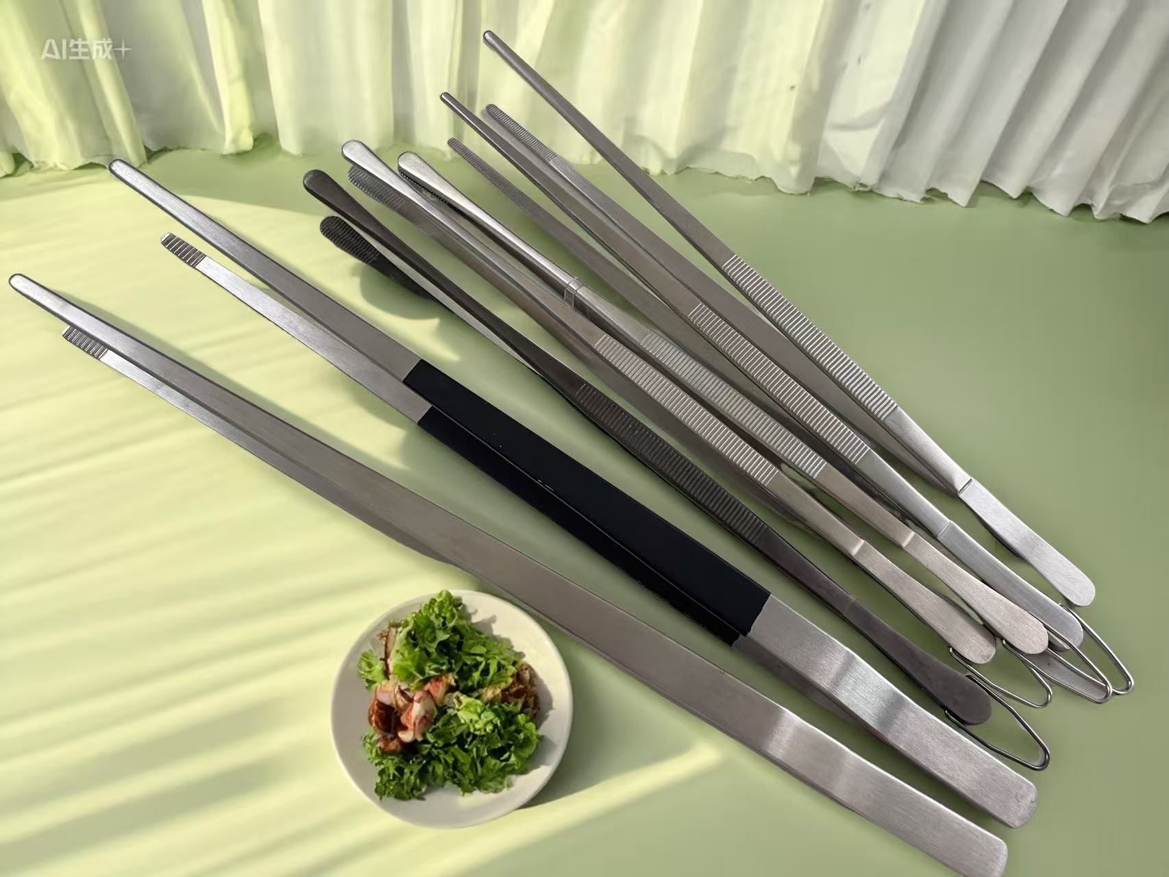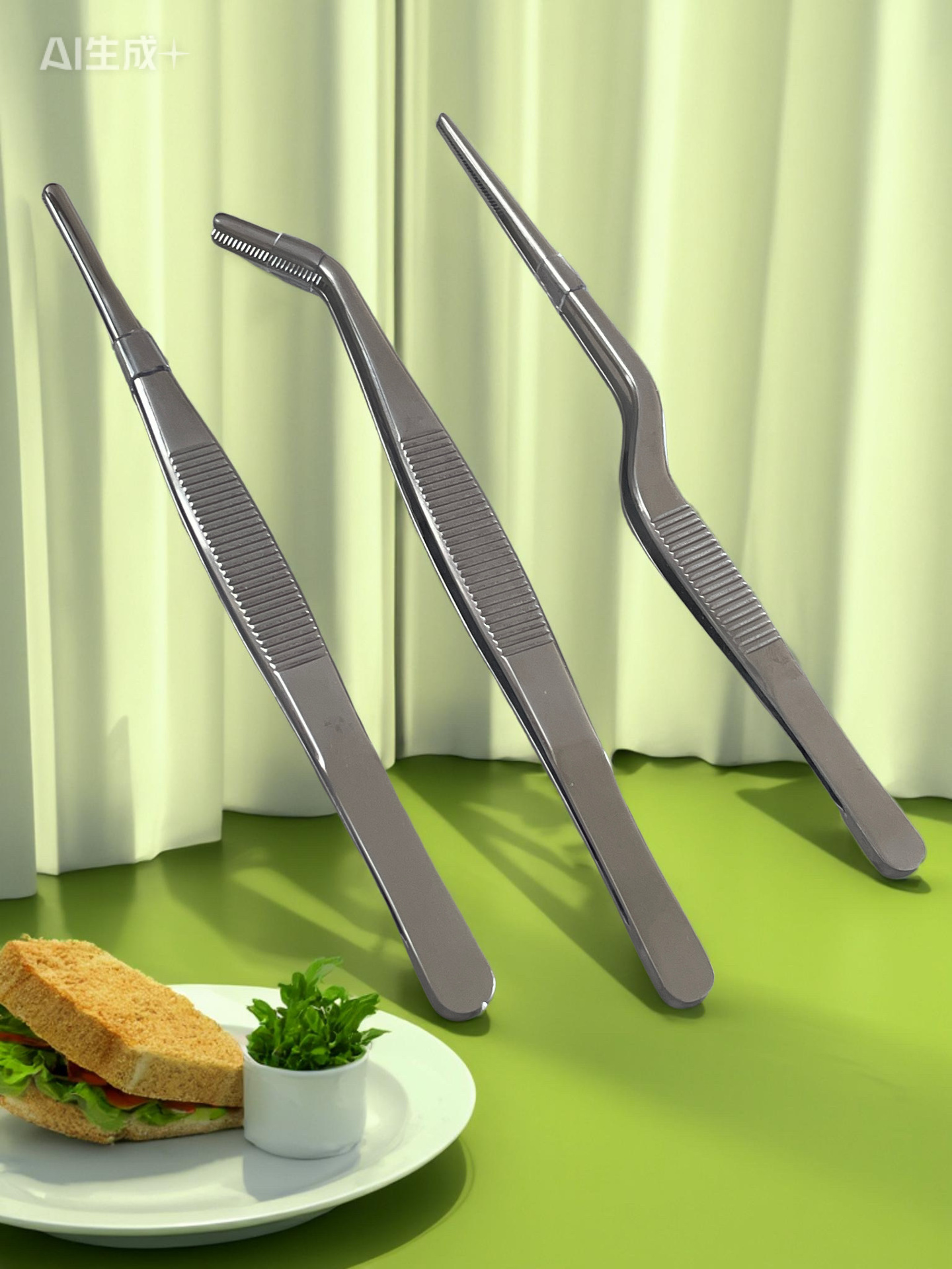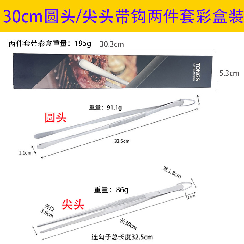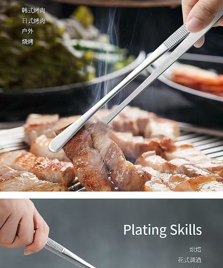 亚马逊摆盘食物夹子烧烤夹厨房剪商用烤肉不锈钢韩式烤肉夹直销