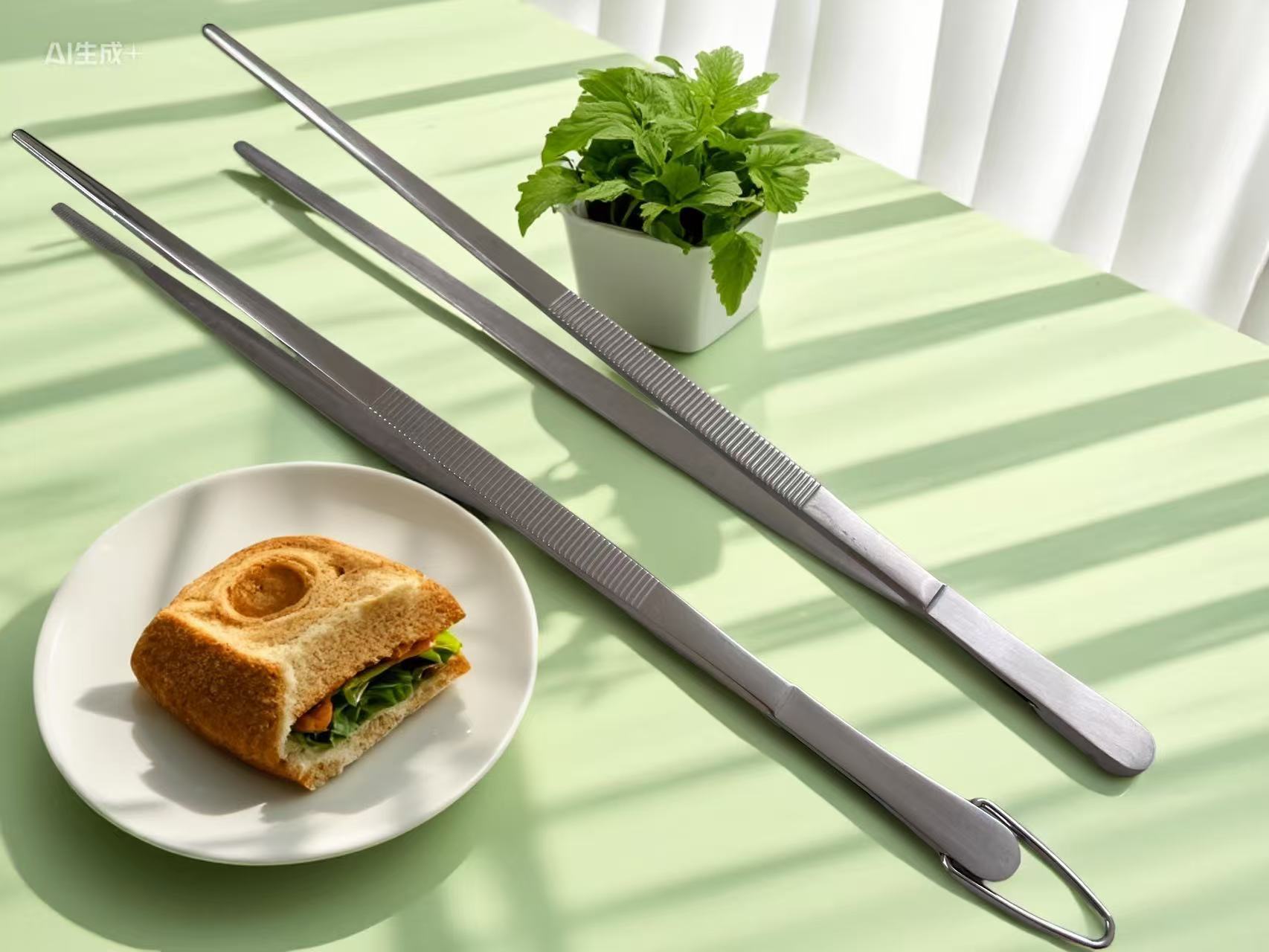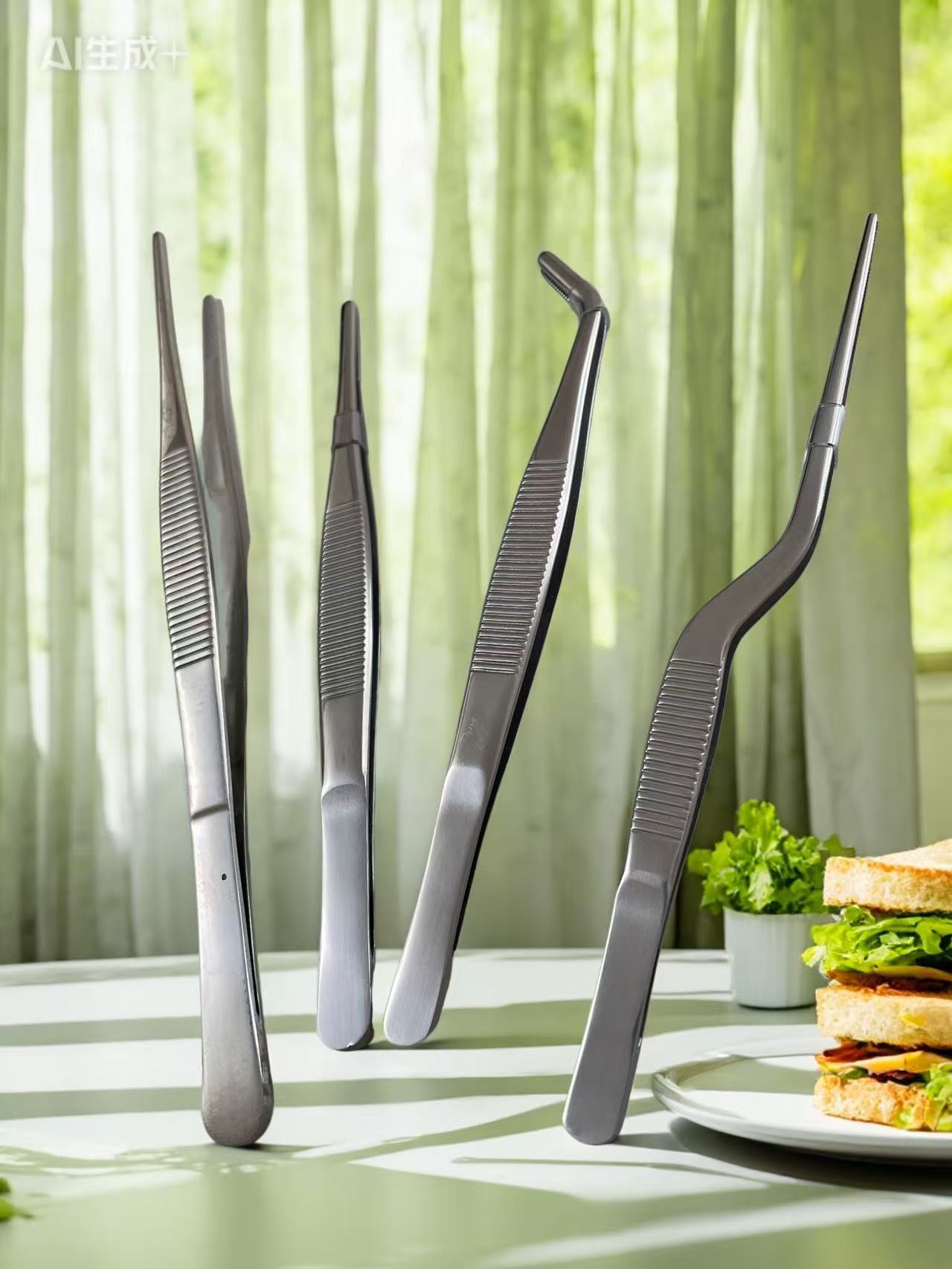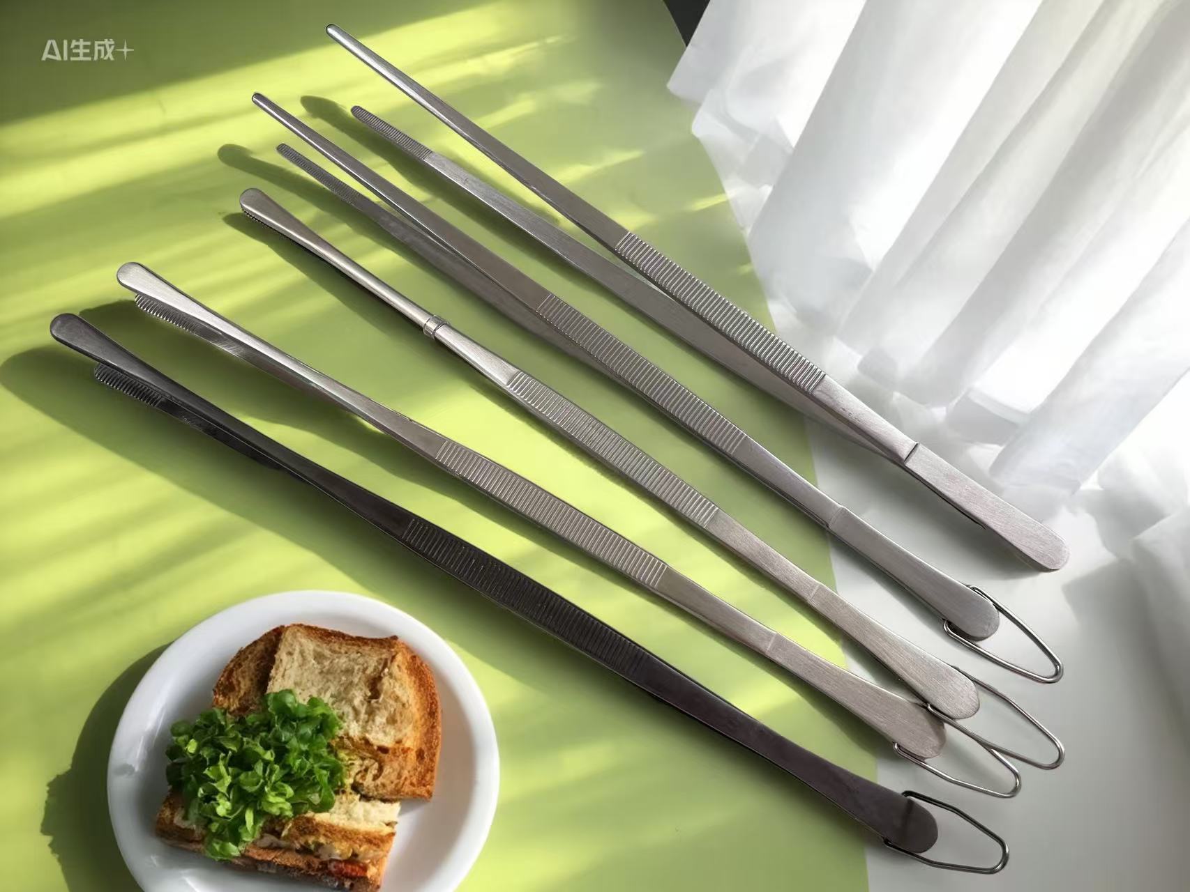 亚马逊摆盘食物夹子烧烤夹厨房剪商用烤肉不锈钢韩式烤肉夹直销