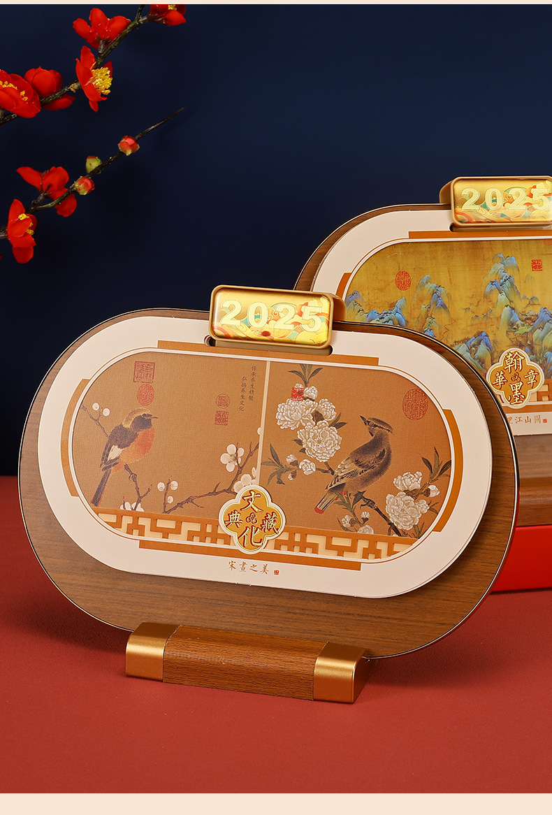 2026年台历商务logo新款国潮风创意木质台历支持企业公司印刷