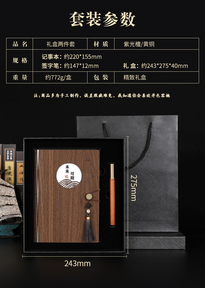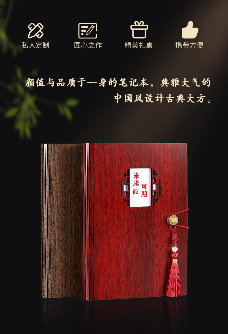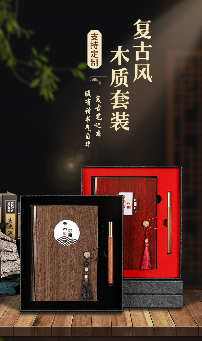 文创木质笔记本套装 教师节送老师记事本 复古手账本批量可订logo