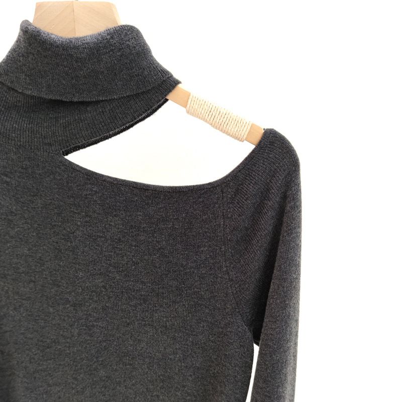 2025秋冬新款露肩高领针织衫长袖套头打底毛衣上衣女装设计感上衣