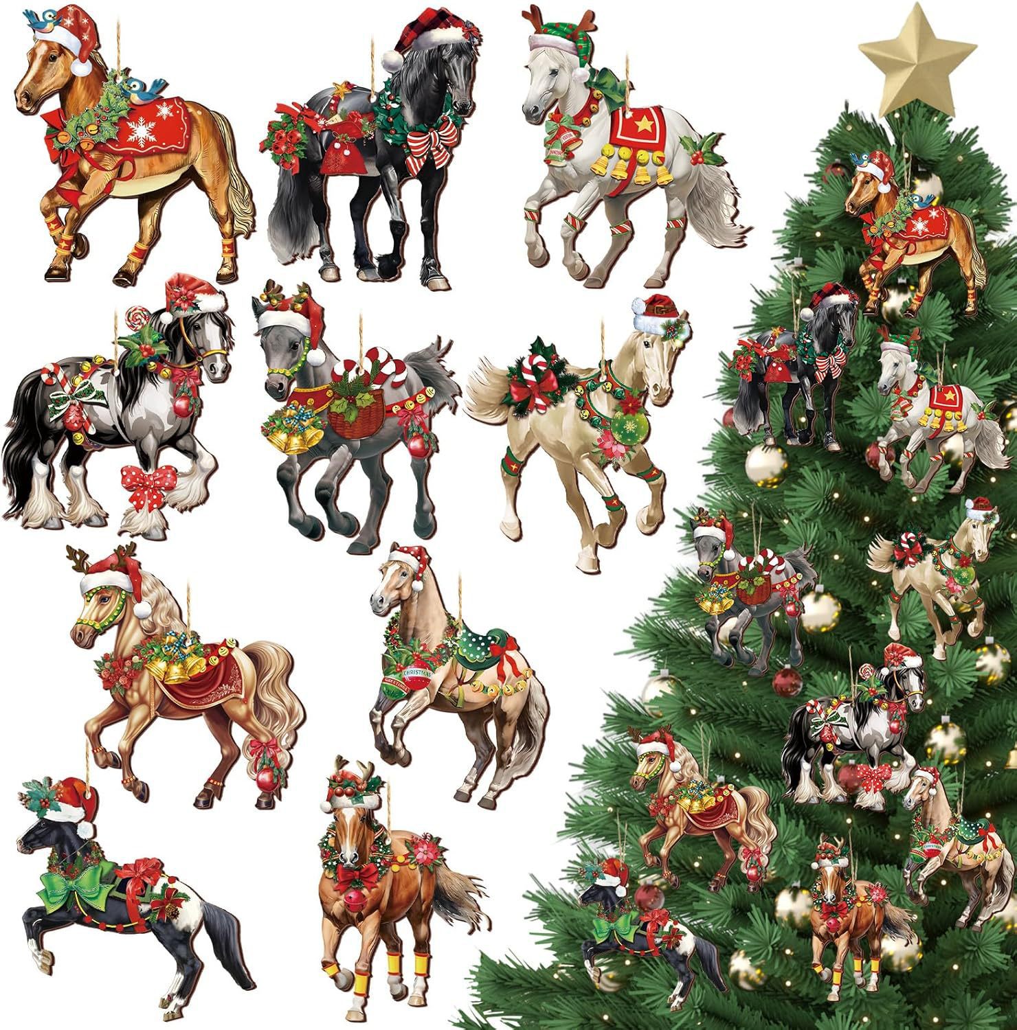 跨境新品20件圣诞节复古牛仔小马西部主题装饰圣诞树派对木质挂件