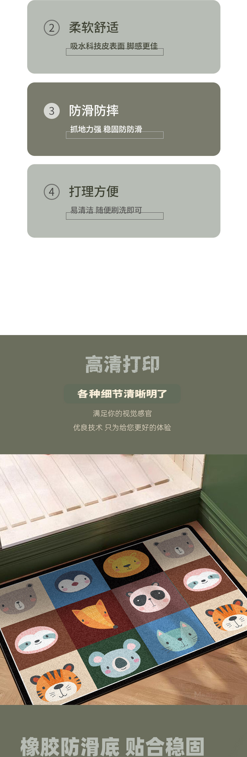 卡通动物地板浴室吸水地垫硅藻泥软垫卫生间卫浴防滑脚垫