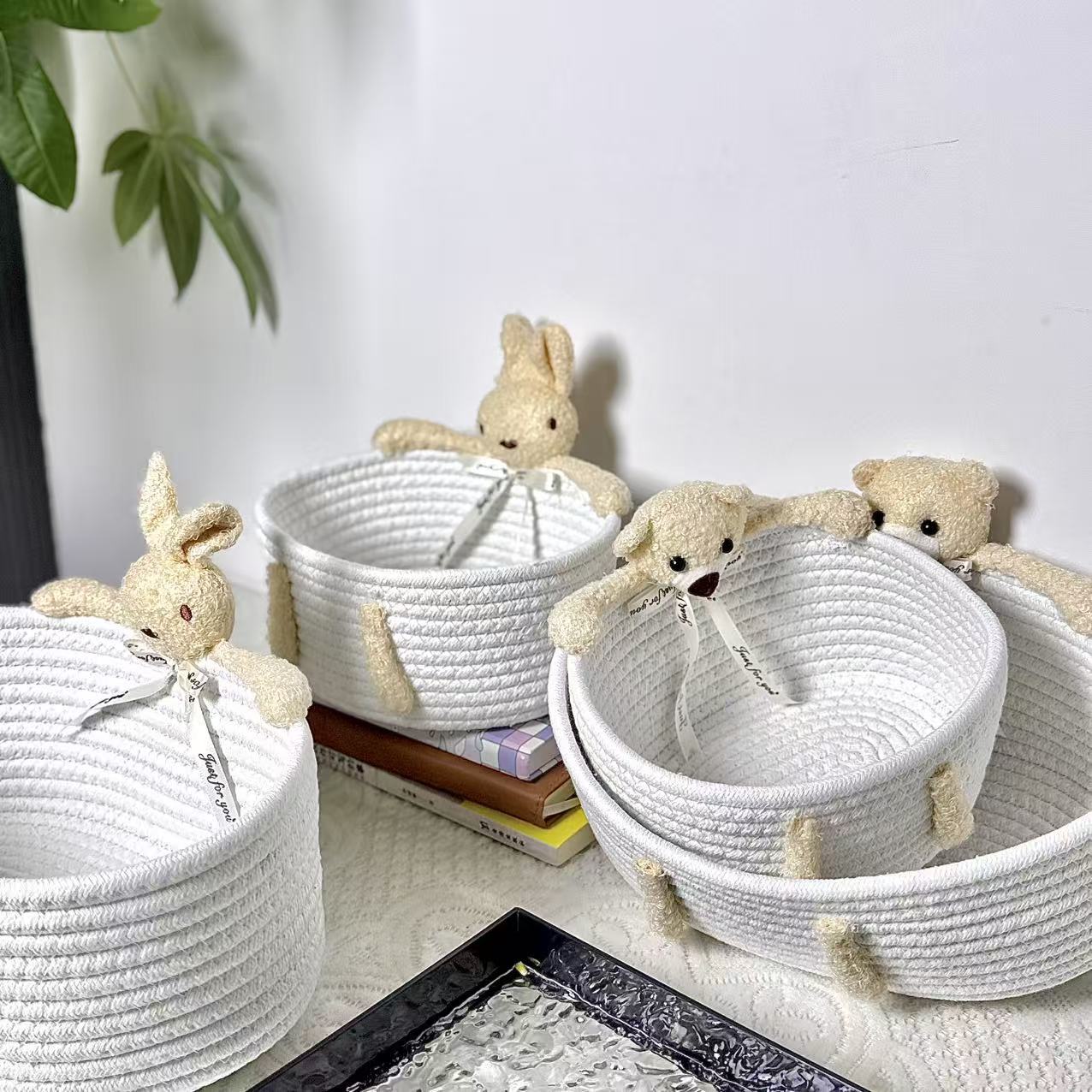 手工编织筐收纳盒杂物收纳筐玄关化妆品收纳框可爱兔子桌面小篮子