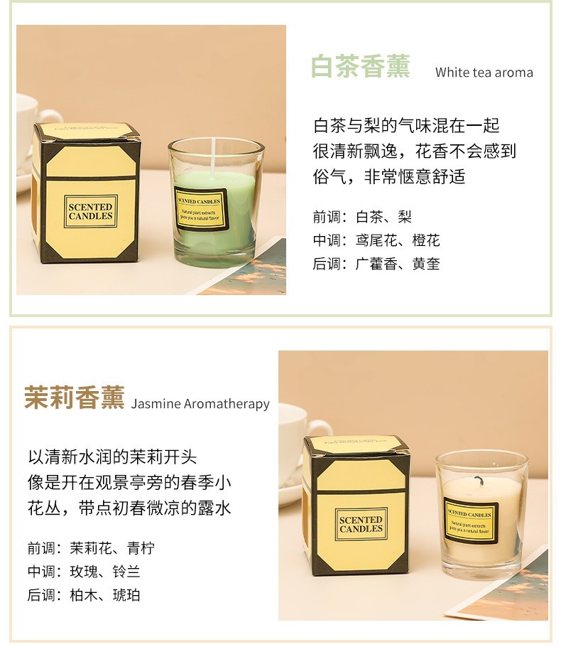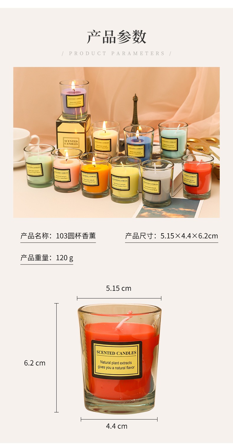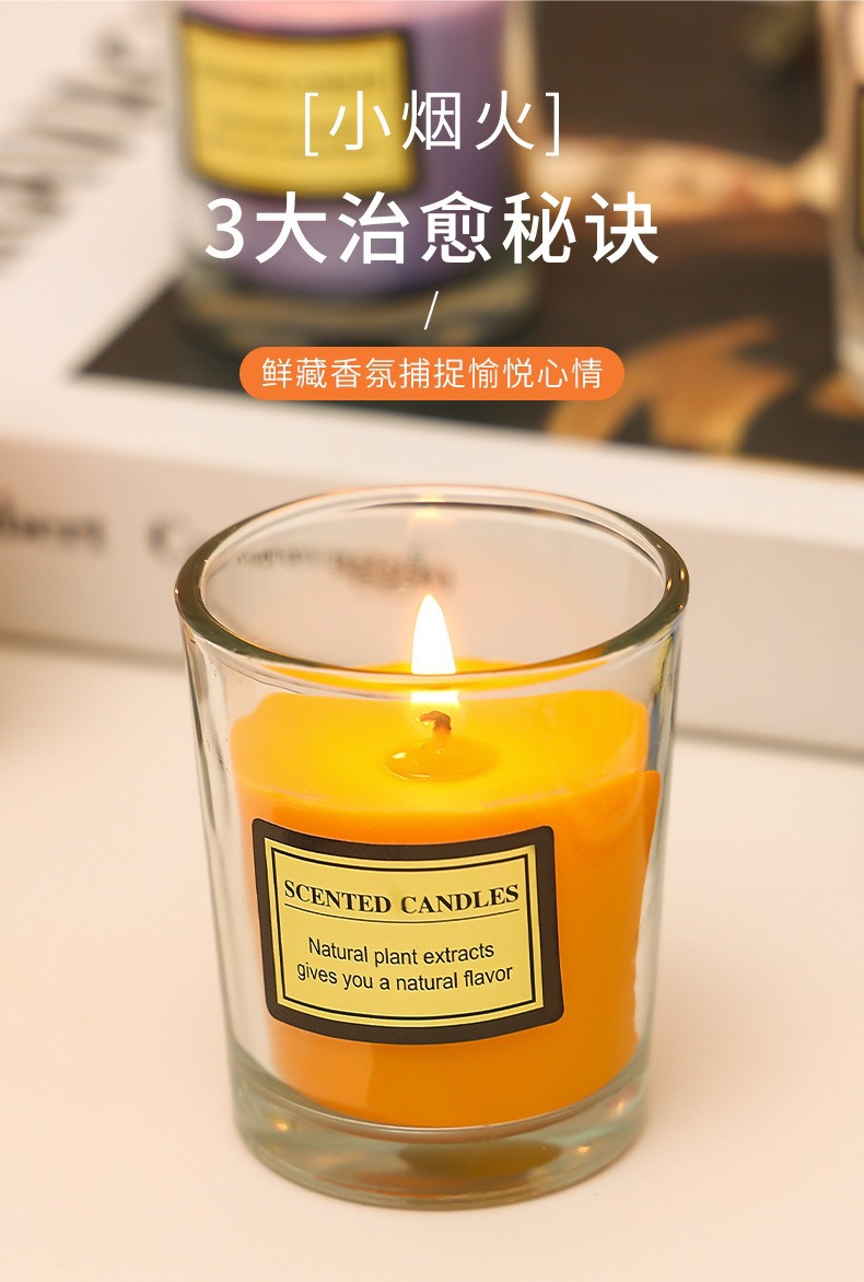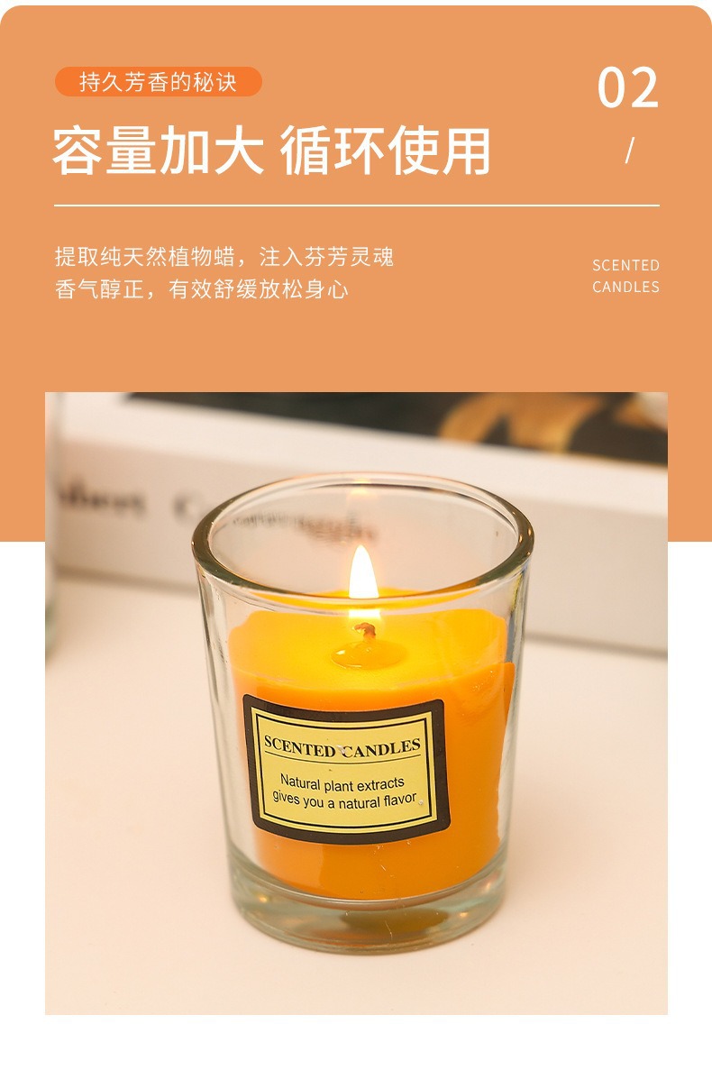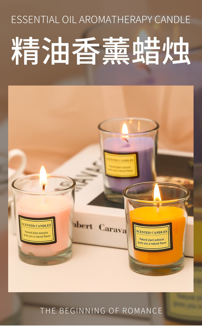 亚马逊植物精油香薰蜡烛DIY户外防风透明玻璃杯低温无烟腊烛批发