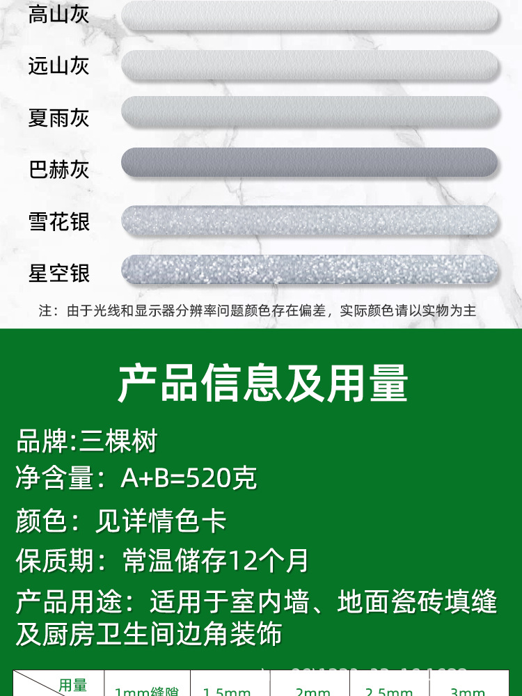 三。棵树美缝剂环氧彩砂瓷砖地砖专用厂家批发一件起批防水防霉