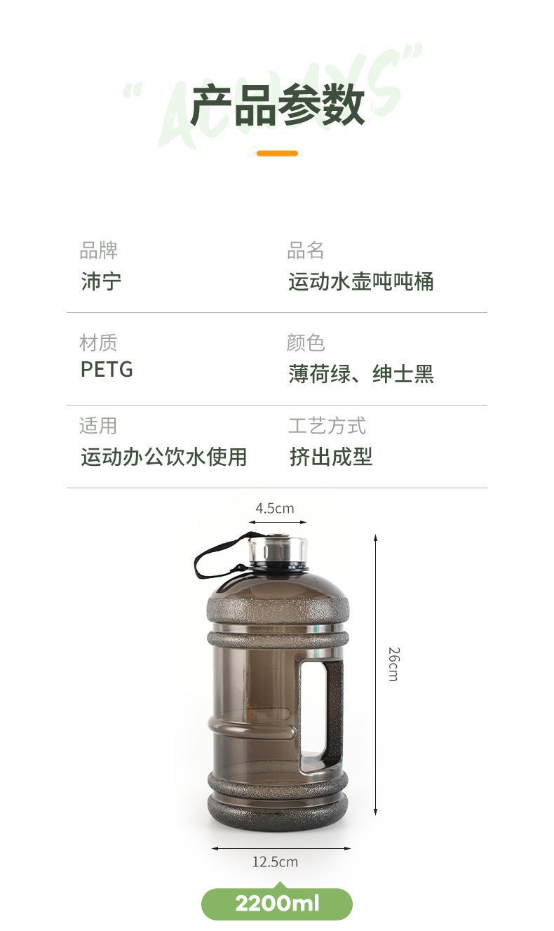 网红同款2.2L健身运动大容量水壶吨吨桶户外便携时尚健身房水杯壶,批发价,价格:8.8,厂家直销,网红同款2.2L健身运动大容量水壶吨吨桶户外便携时尚健身房水杯壶,免费拿样。