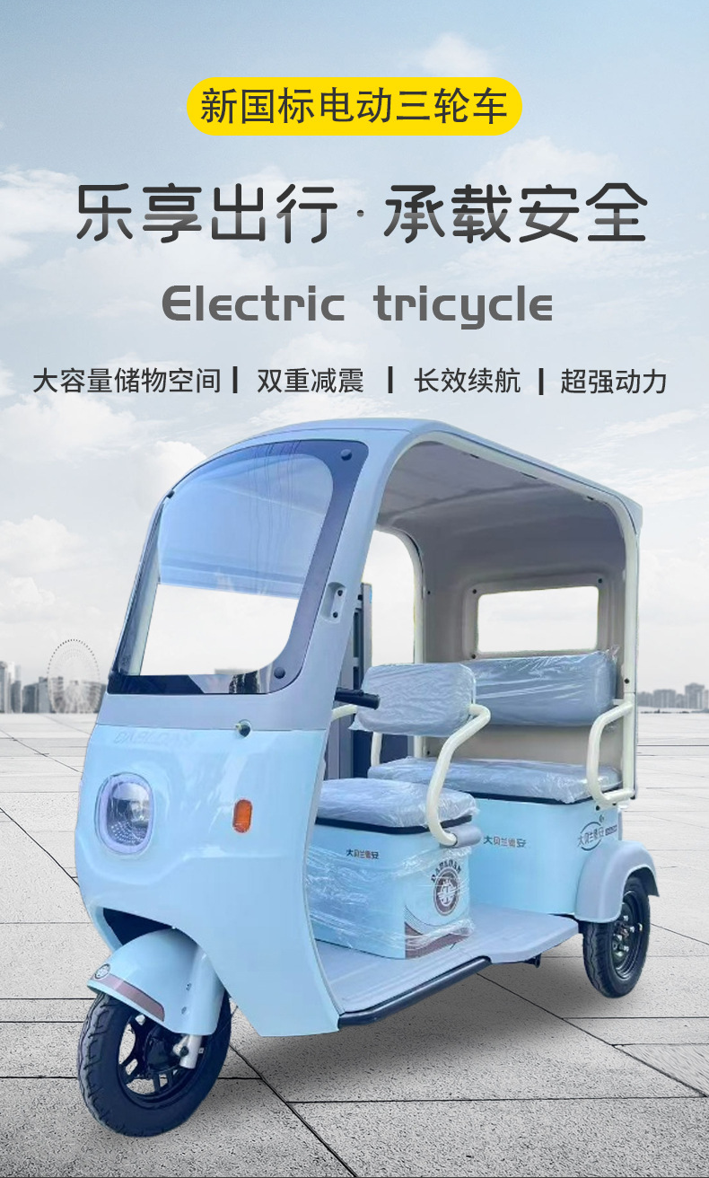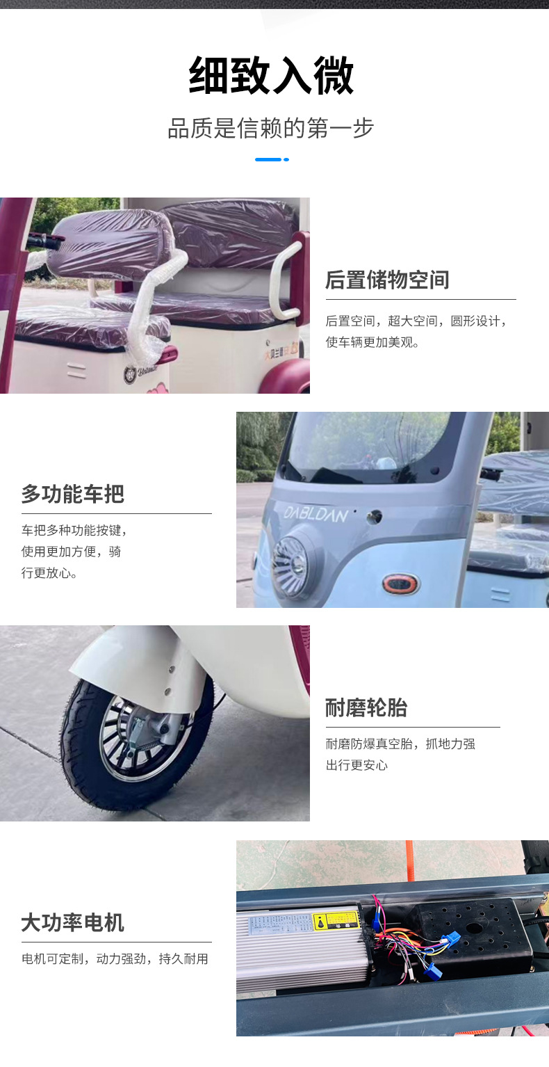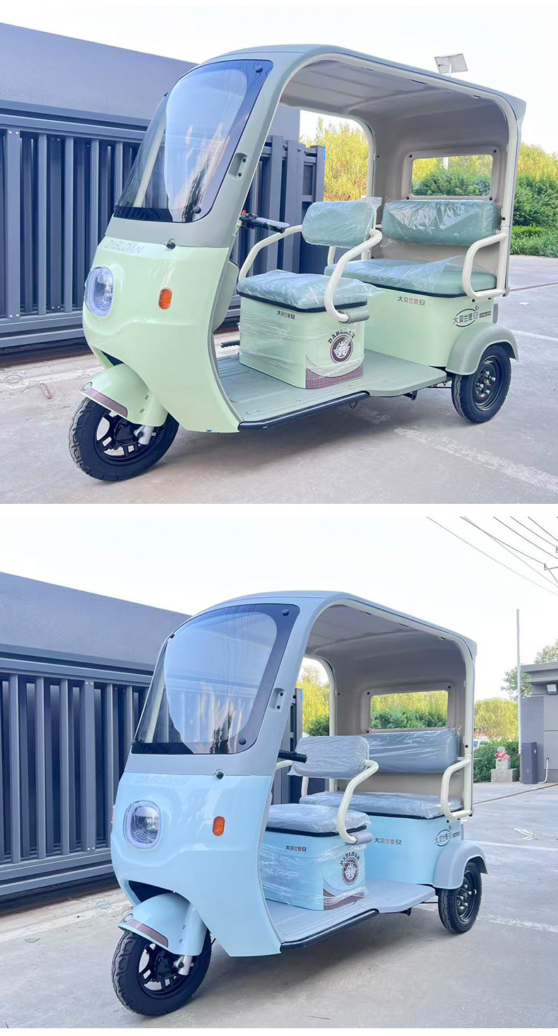 电动三轮车一体棚式加宽双排座椅源头厂家老人代步家用电动三轮车