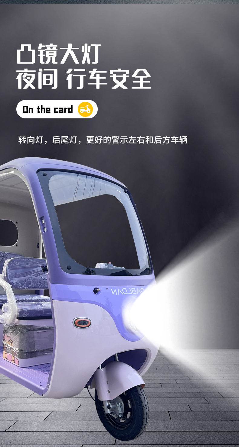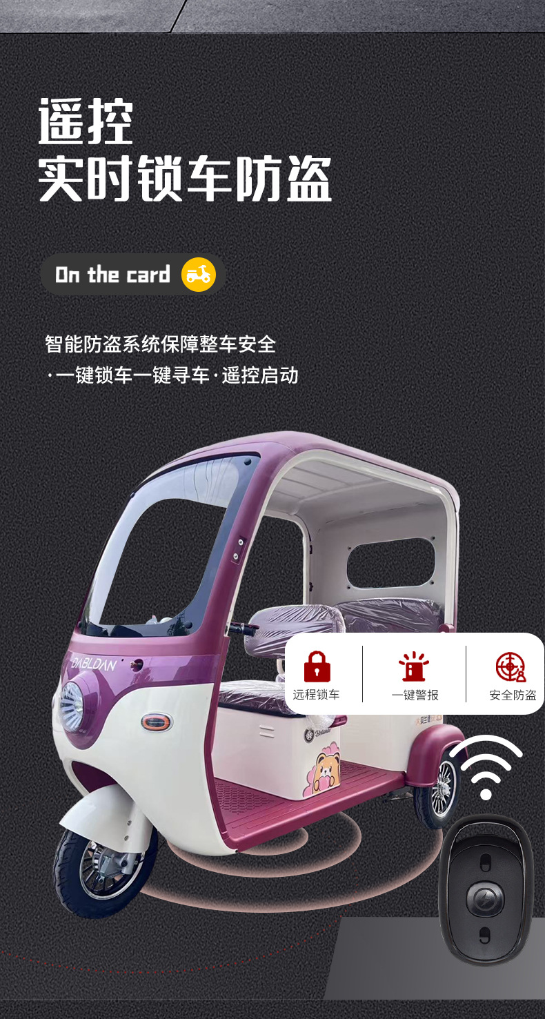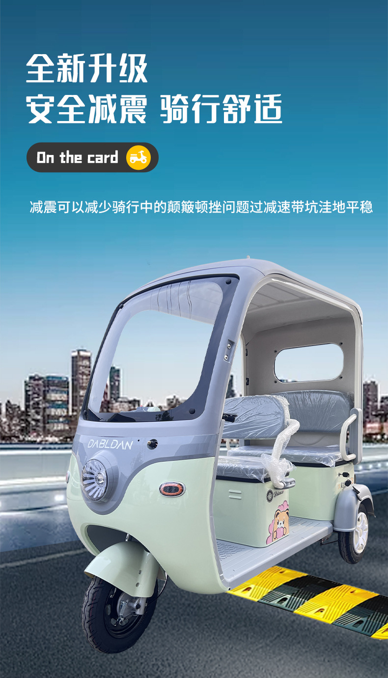 电动三轮车一体棚式加宽双排座椅源头厂家老人代步家用电动三轮车