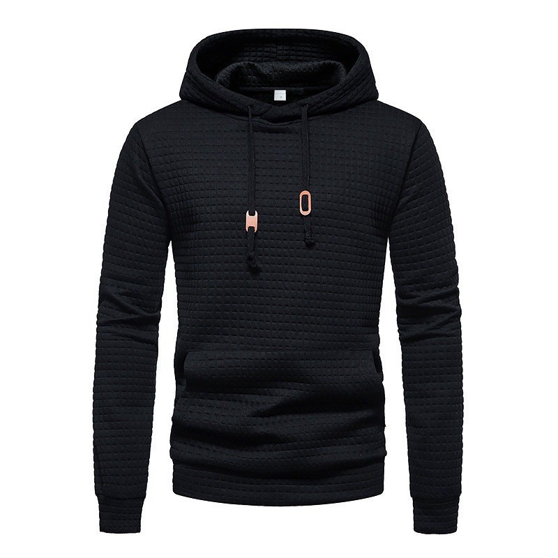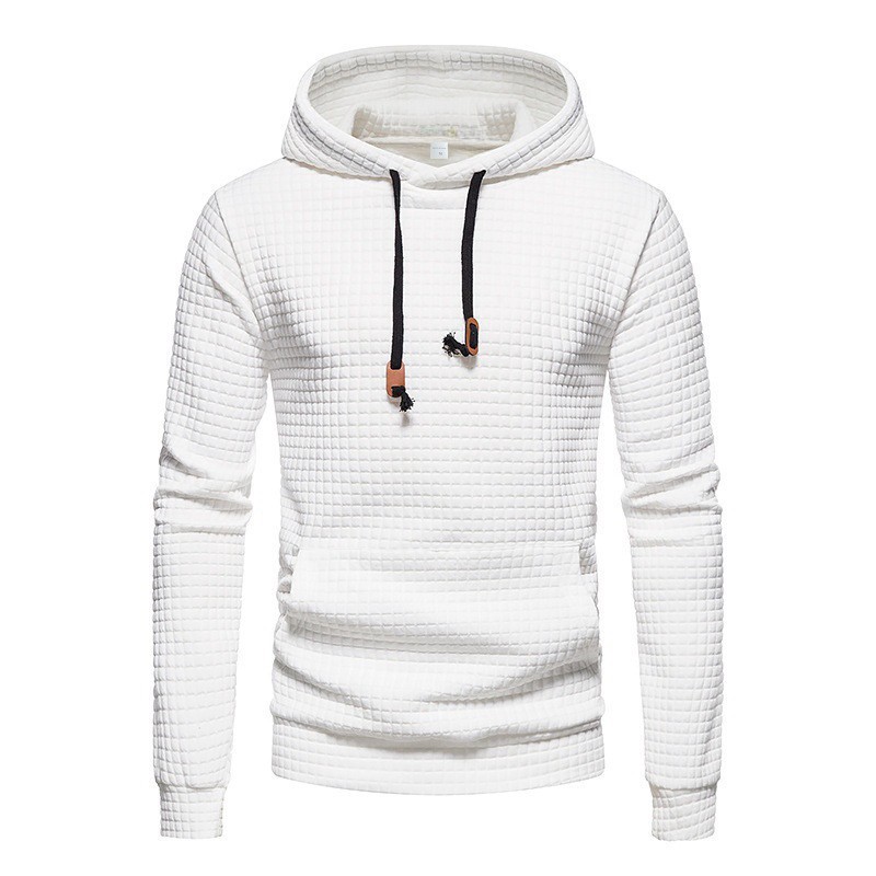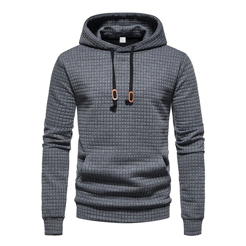 跨境外贸新款亚马逊男士青年时尚潮流休闲小格子提花连帽卫衣