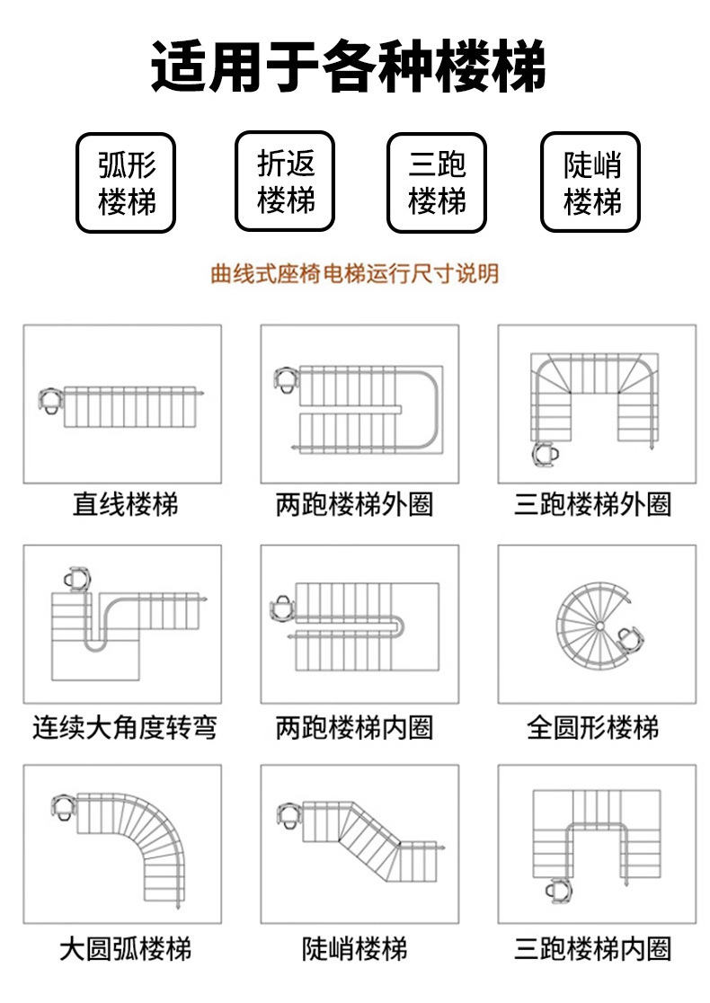 家用座椅电梯老人上下楼曲线楼道电动无障碍遥控升降家用座椅电梯