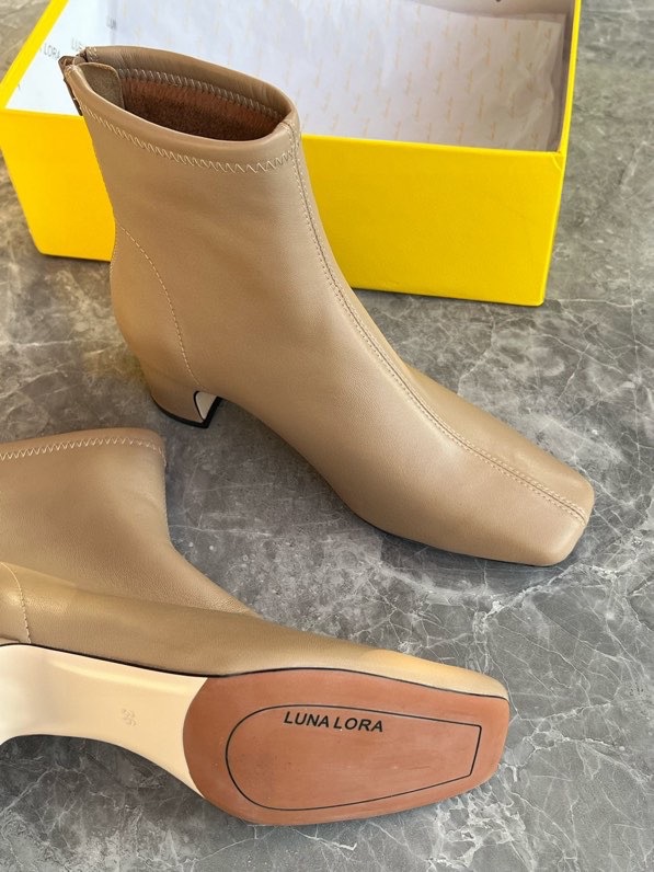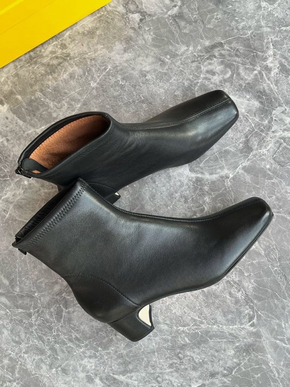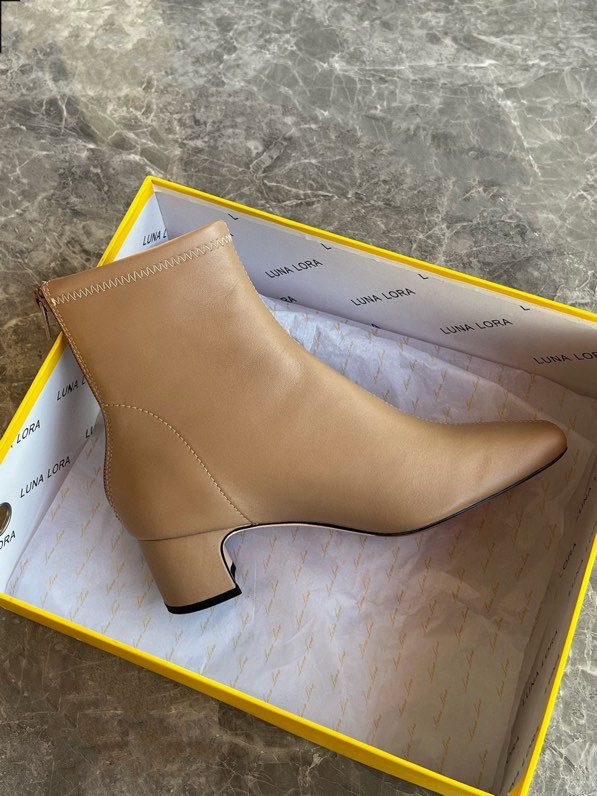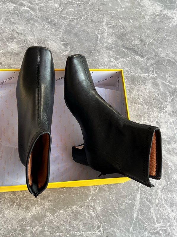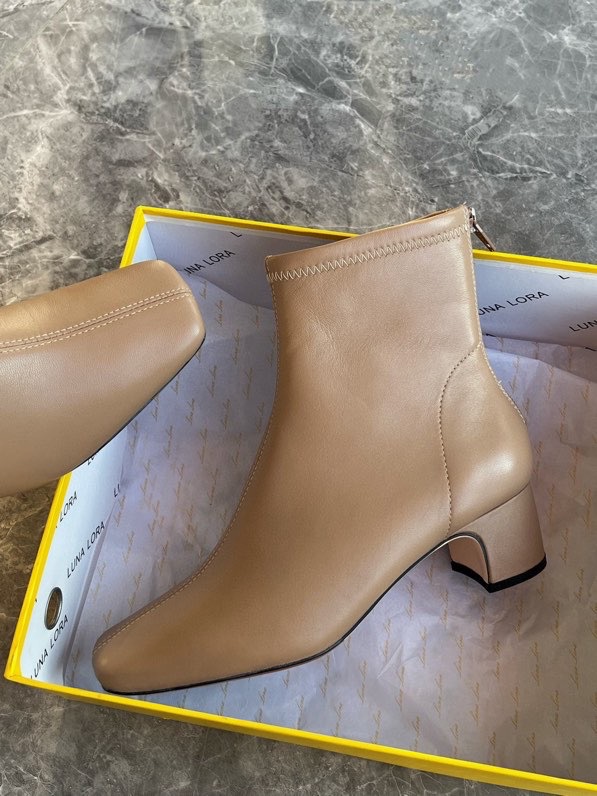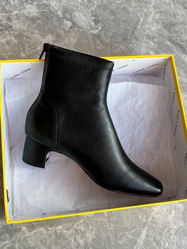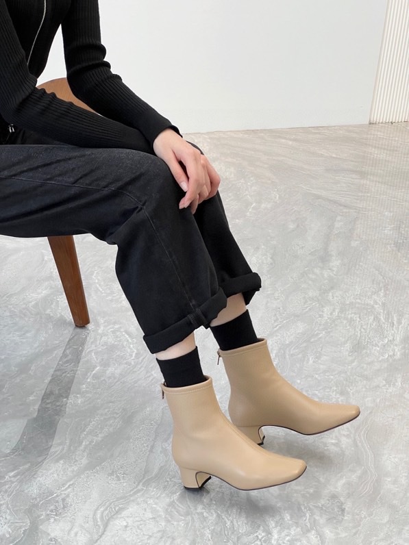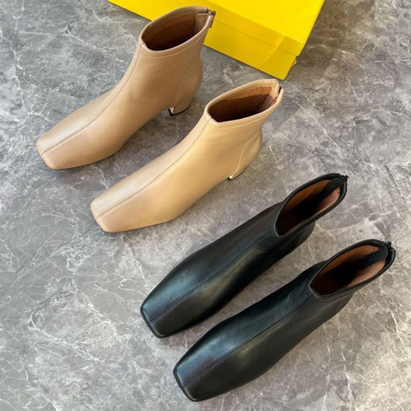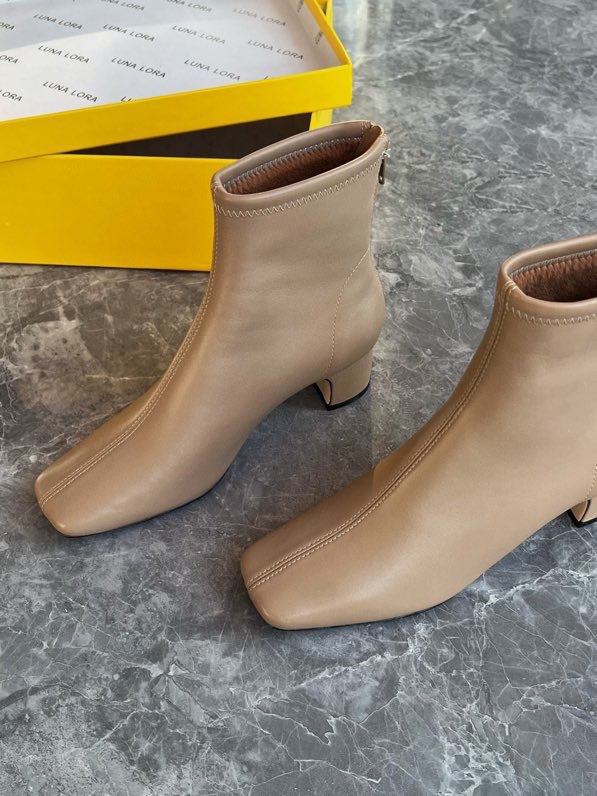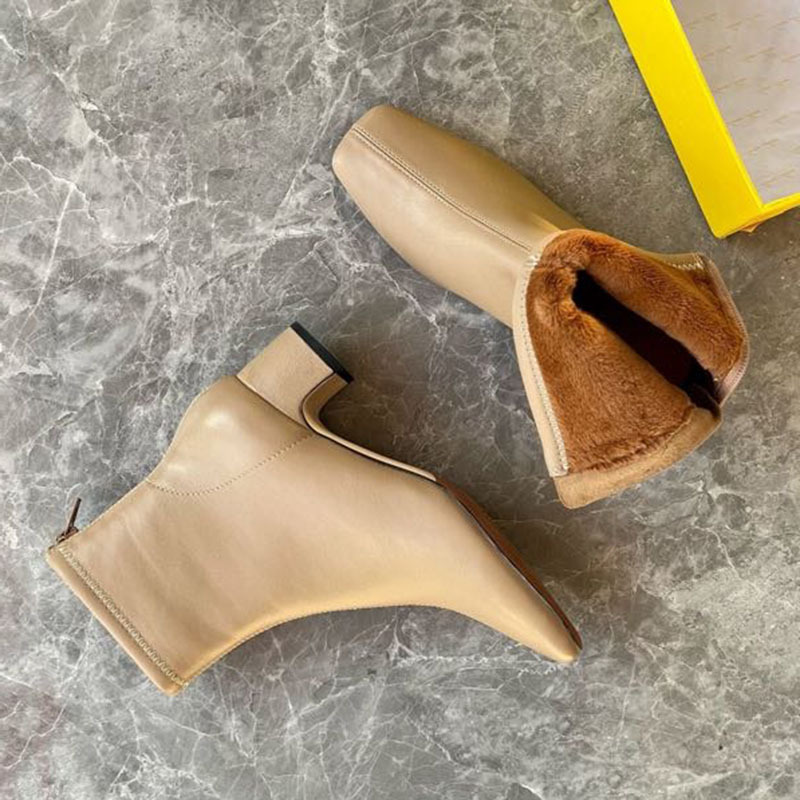 莞产高货瘦瘦短靴方头粗跟后拉链羊皮软底舒适冬季加丝光绒马丁靴