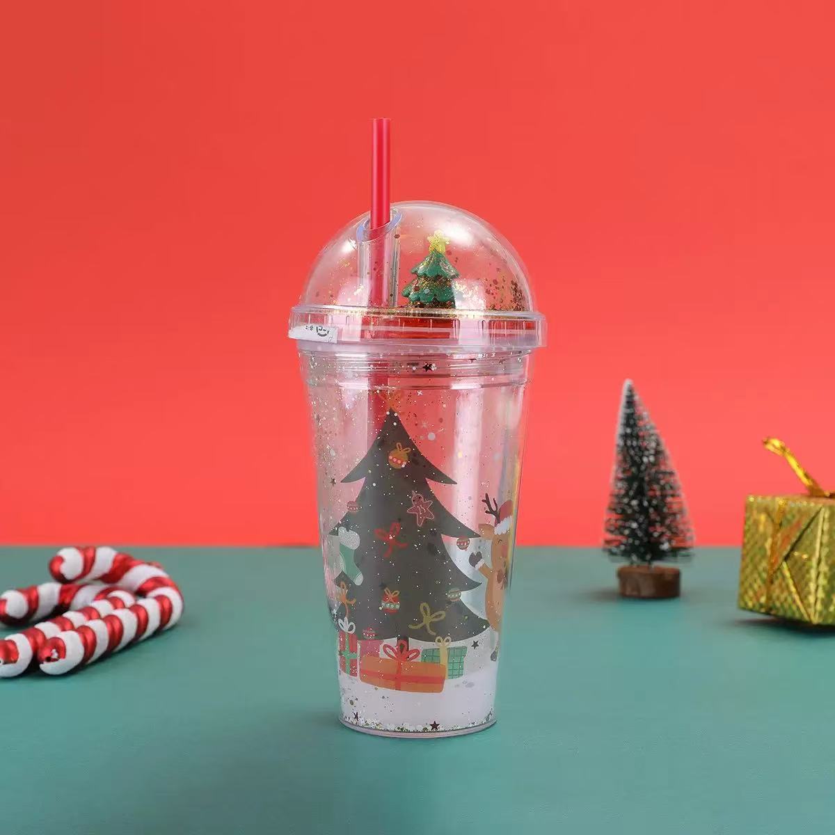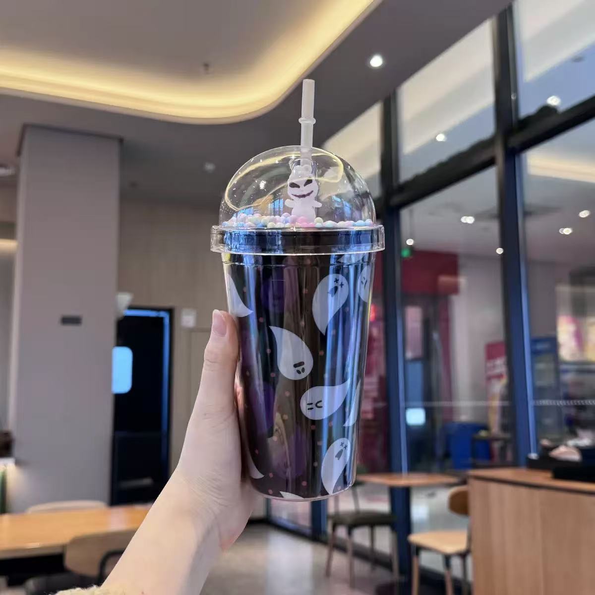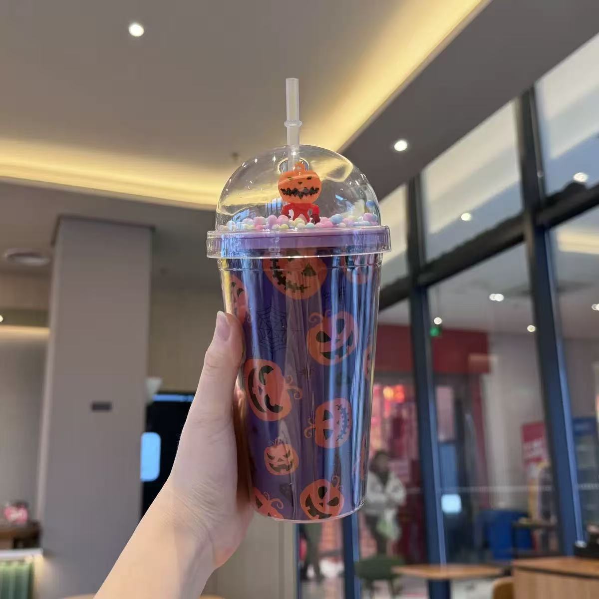 跨境新款高颜值网红卡通塑料16oz双层吸管杯24oz