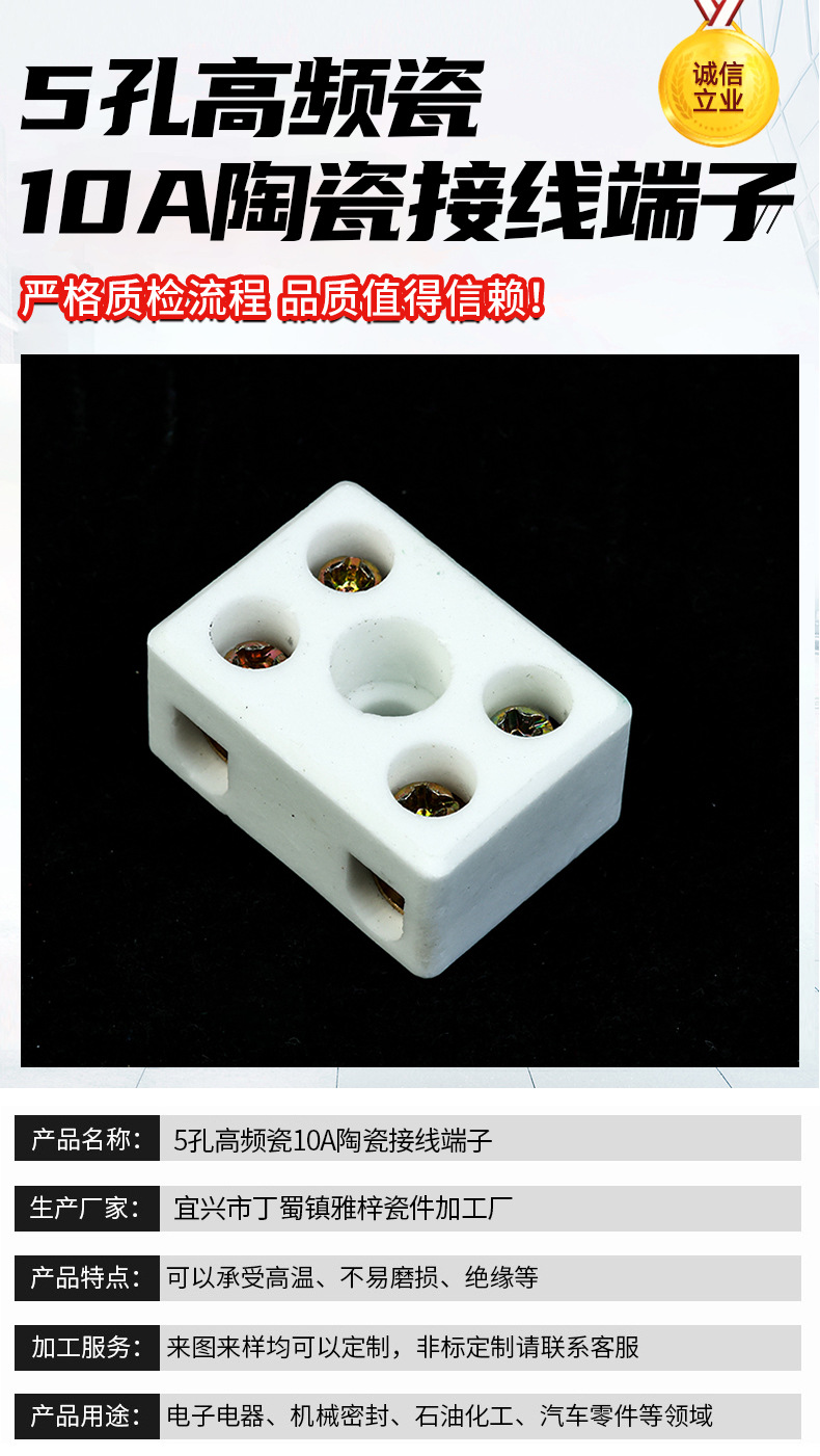 厂家定制5孔高频瓷10A陶瓷接线端子耐高温陶瓷接线端子