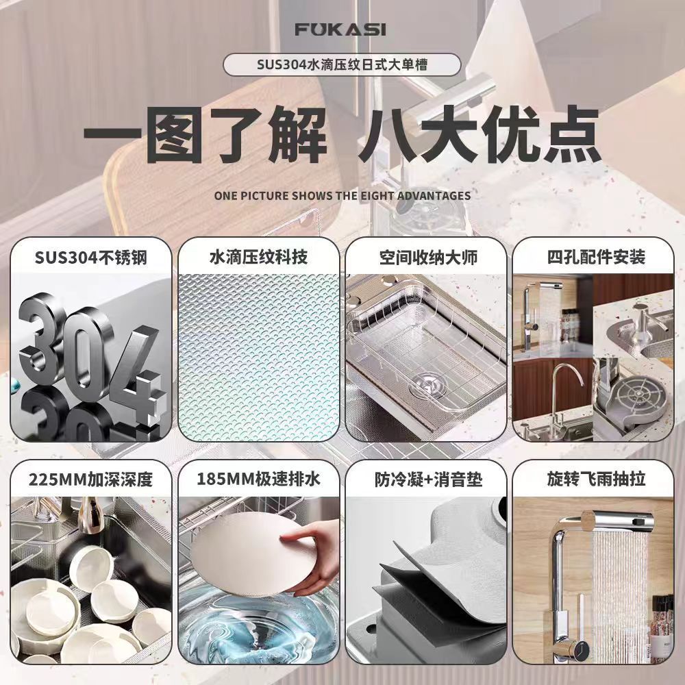 厨房日式大单槽SUS304家用特厚不锈钢洗菜盆台下加厚洗碗刷锅米粒