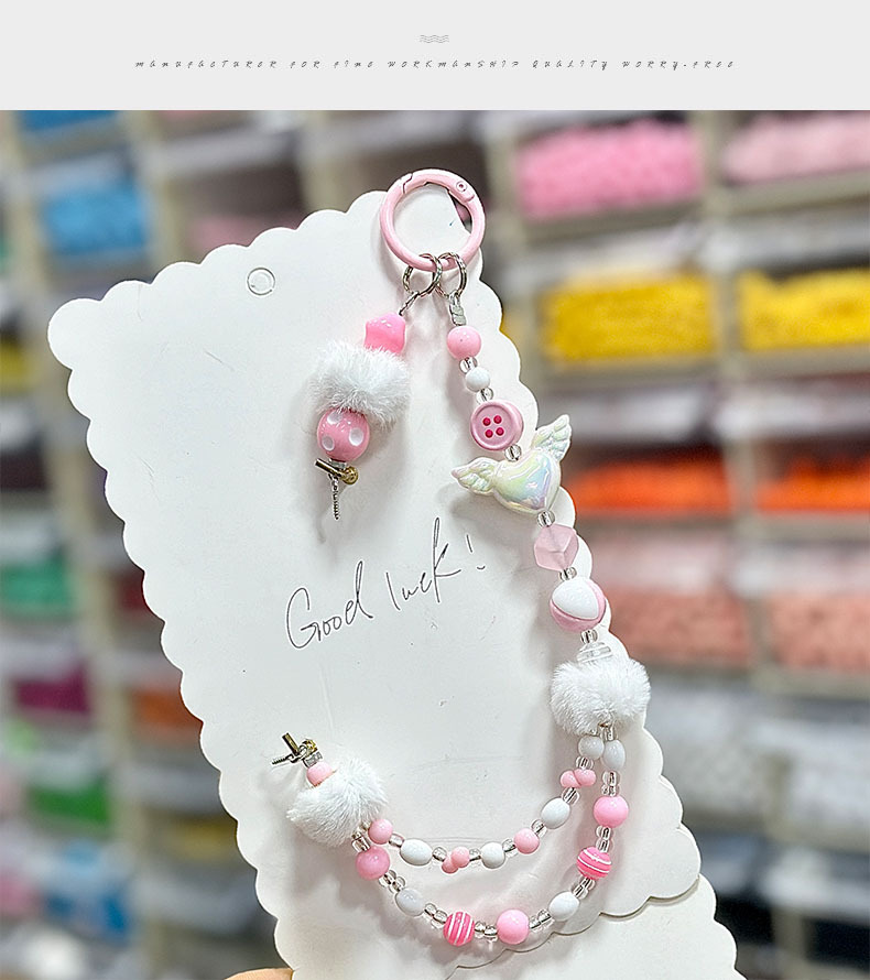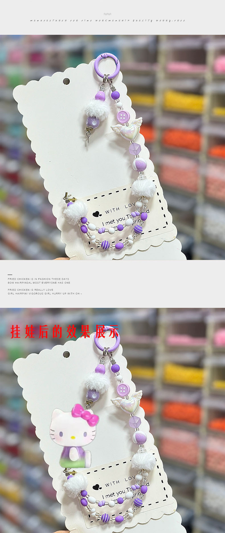原创直播间毛球可爱diy挂娃手机链夏日彩虹糖星星人萌粒链钥匙扣