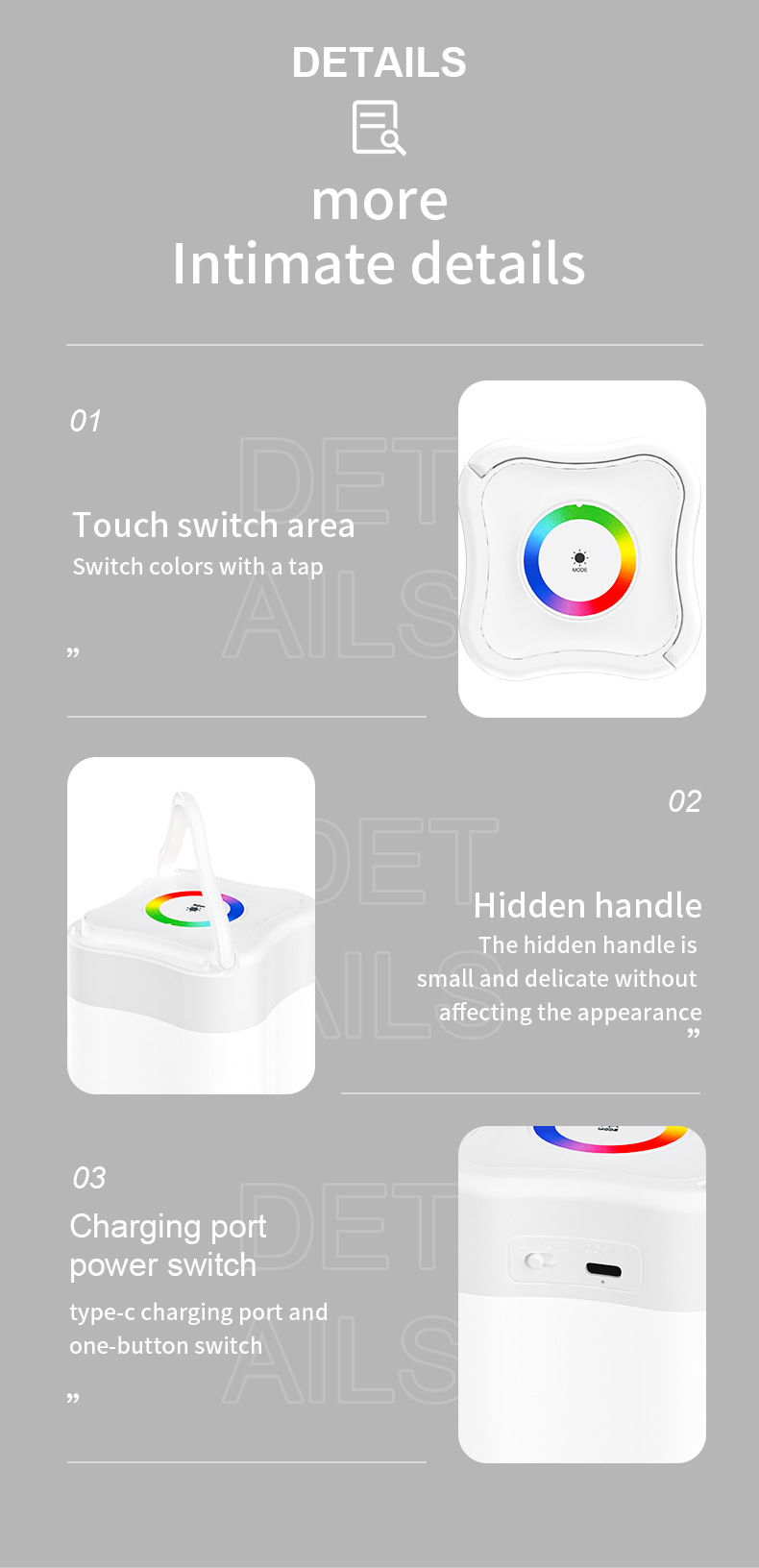 可调色宿舍卧室氛围灯母婴感应七彩手提小夜灯拍拍灯户外露营灯