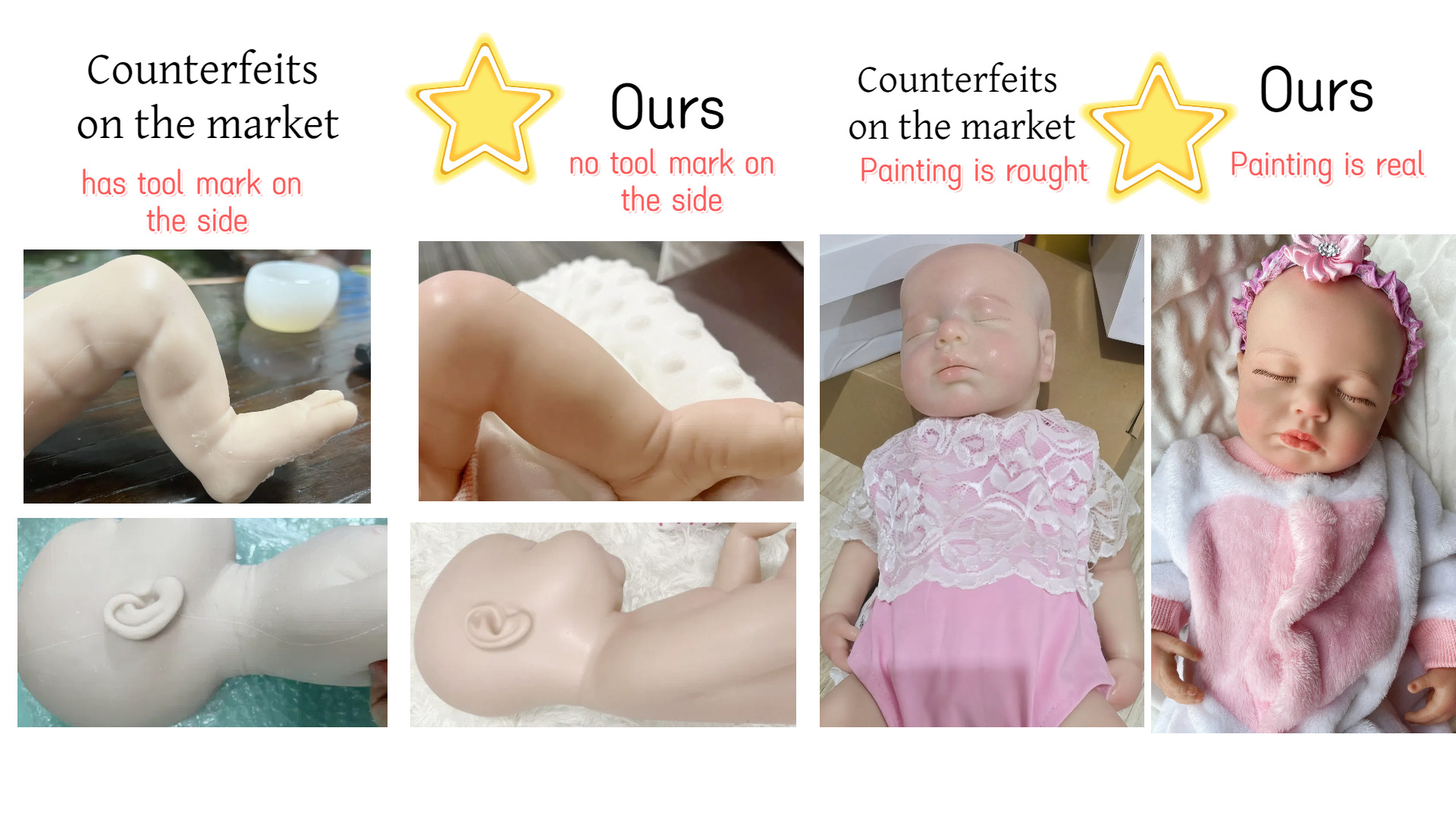 眼睛:睁眼睛的娃娃为台湾产亚克力眼睛;眼睛不会眨动。