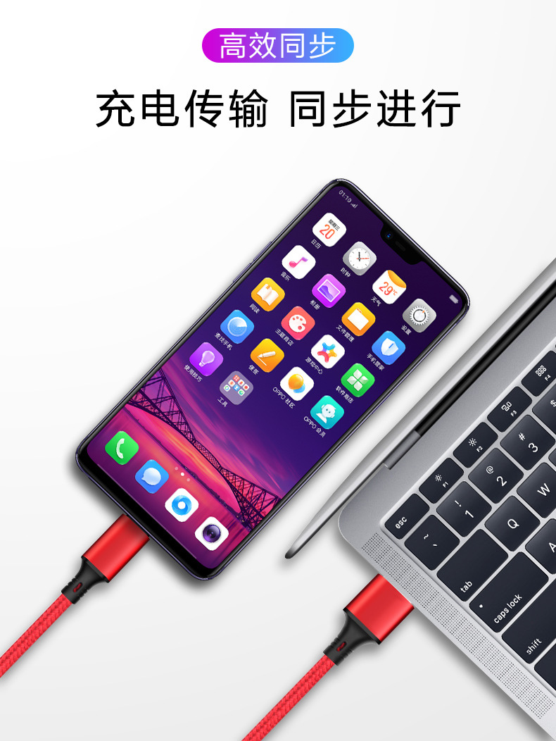 Type配件编织快充数据线2A手机充电线1米Micro折叠适用于安卓苹果