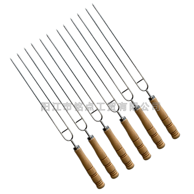 户外烤串便携包6支U型烤串套装橡木手柄U叉套装
