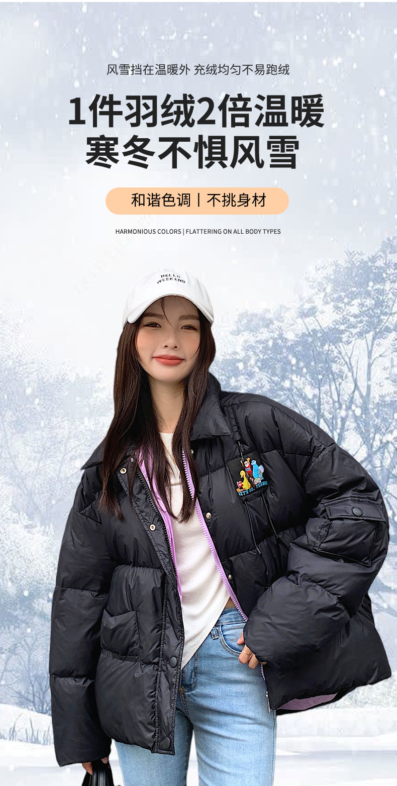 90白鸭绒女羽绒服秋冬小个子百搭短款立领面包服工厂logo定 制