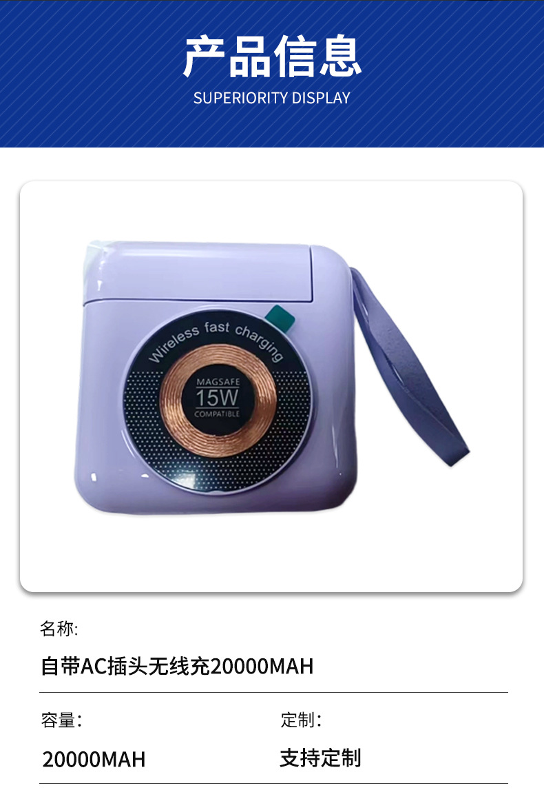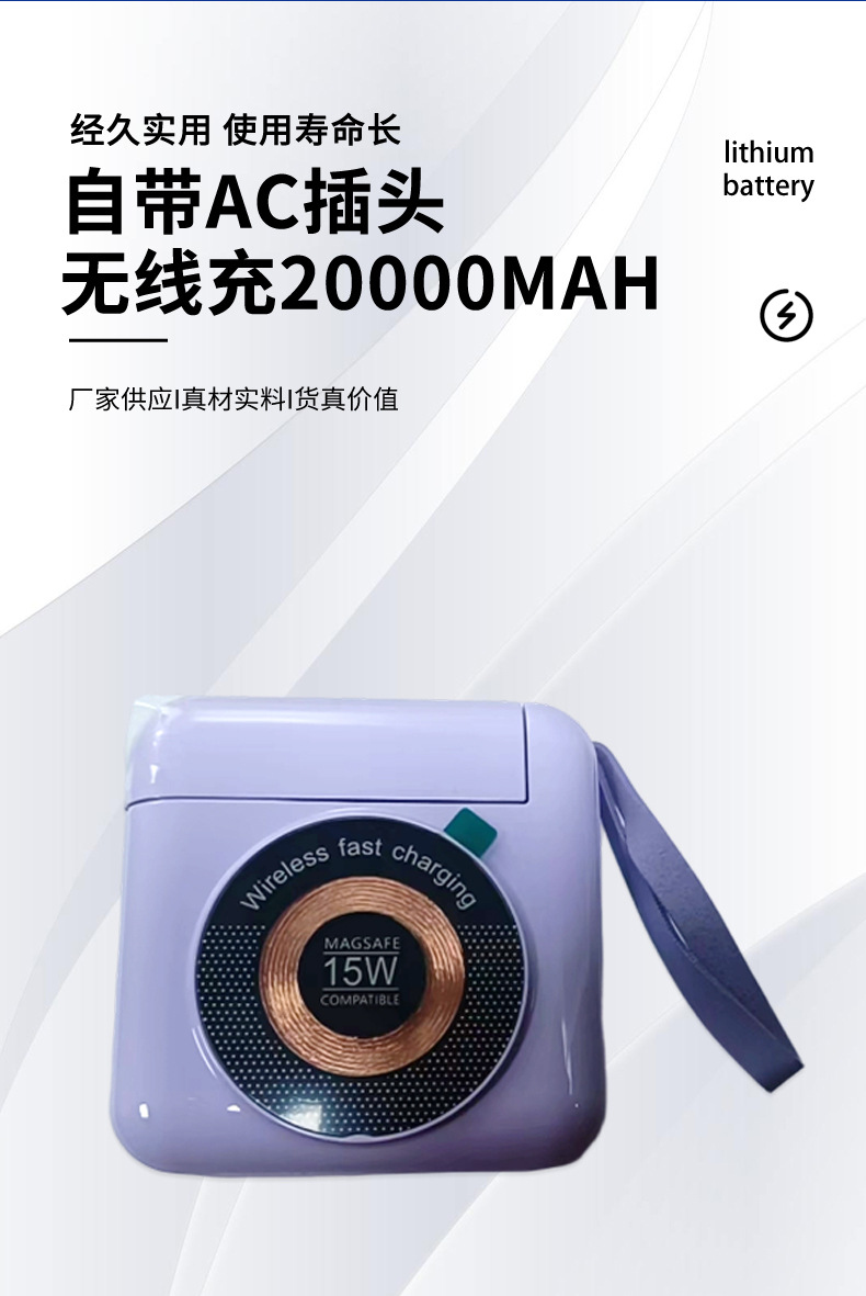 新款自带AC插头磁吸无线快充自带线充电宝20000毫安便携移动电源,批发价,价格:123,厂家直销,新款自带AC插头磁吸无线快充自带线充电宝20000毫安便携移动电源,免费拿样。