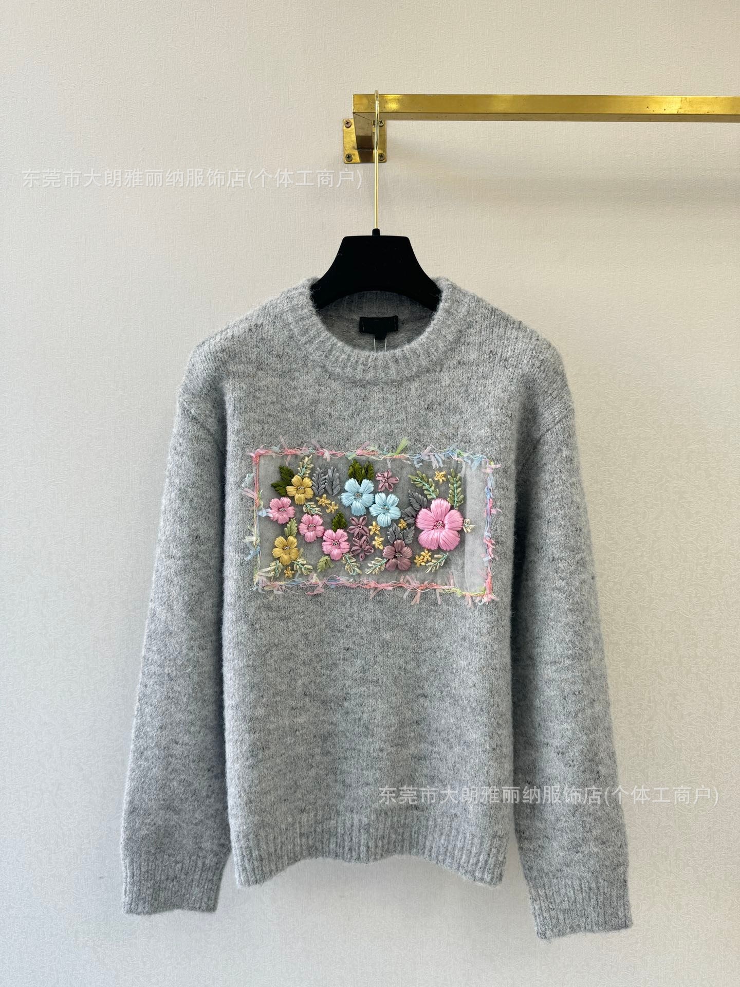 深圳南油货CH家~顶~级版本 25早秋新款 纯色胸前绣花圆领针织长袖