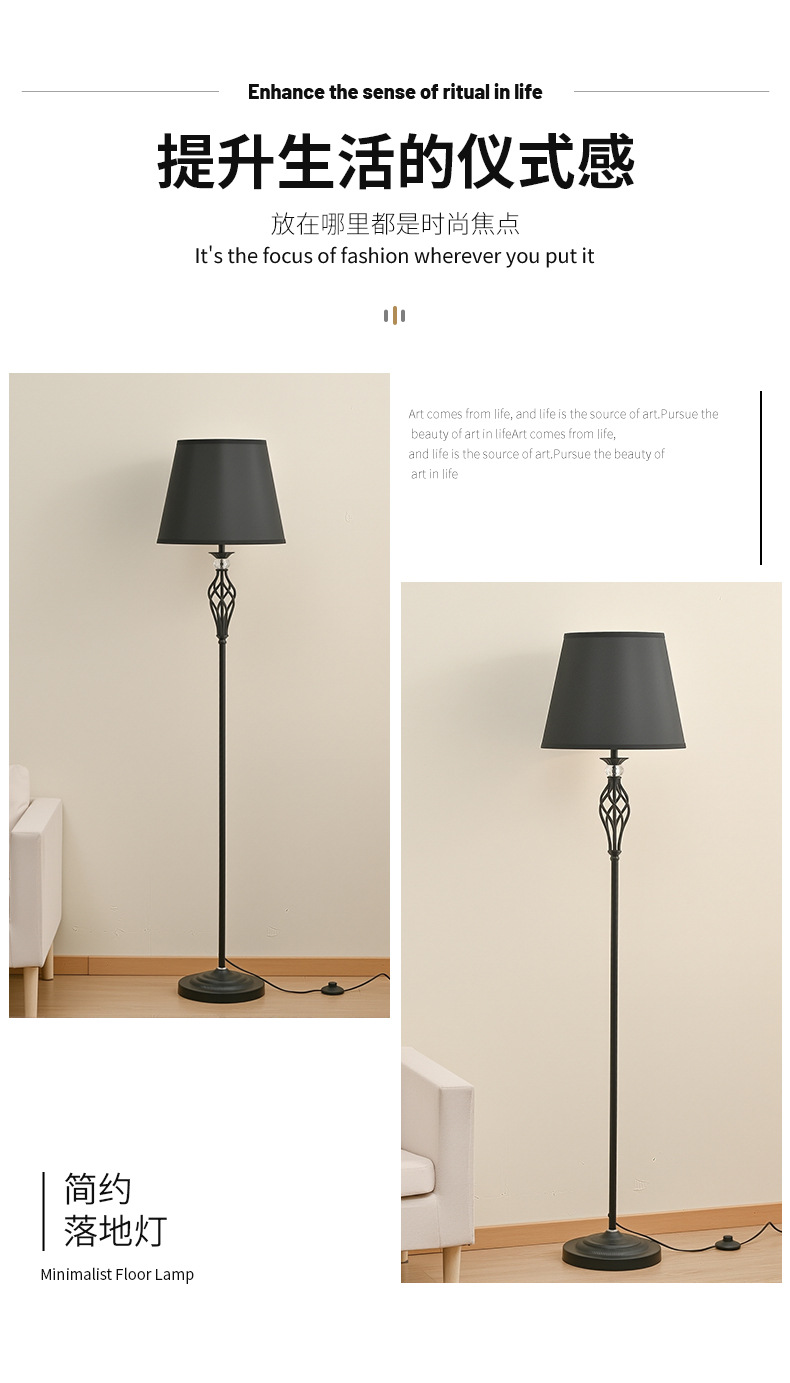 简约落地灯客厅书房卧室站立灯复古工业风乡村铁艺