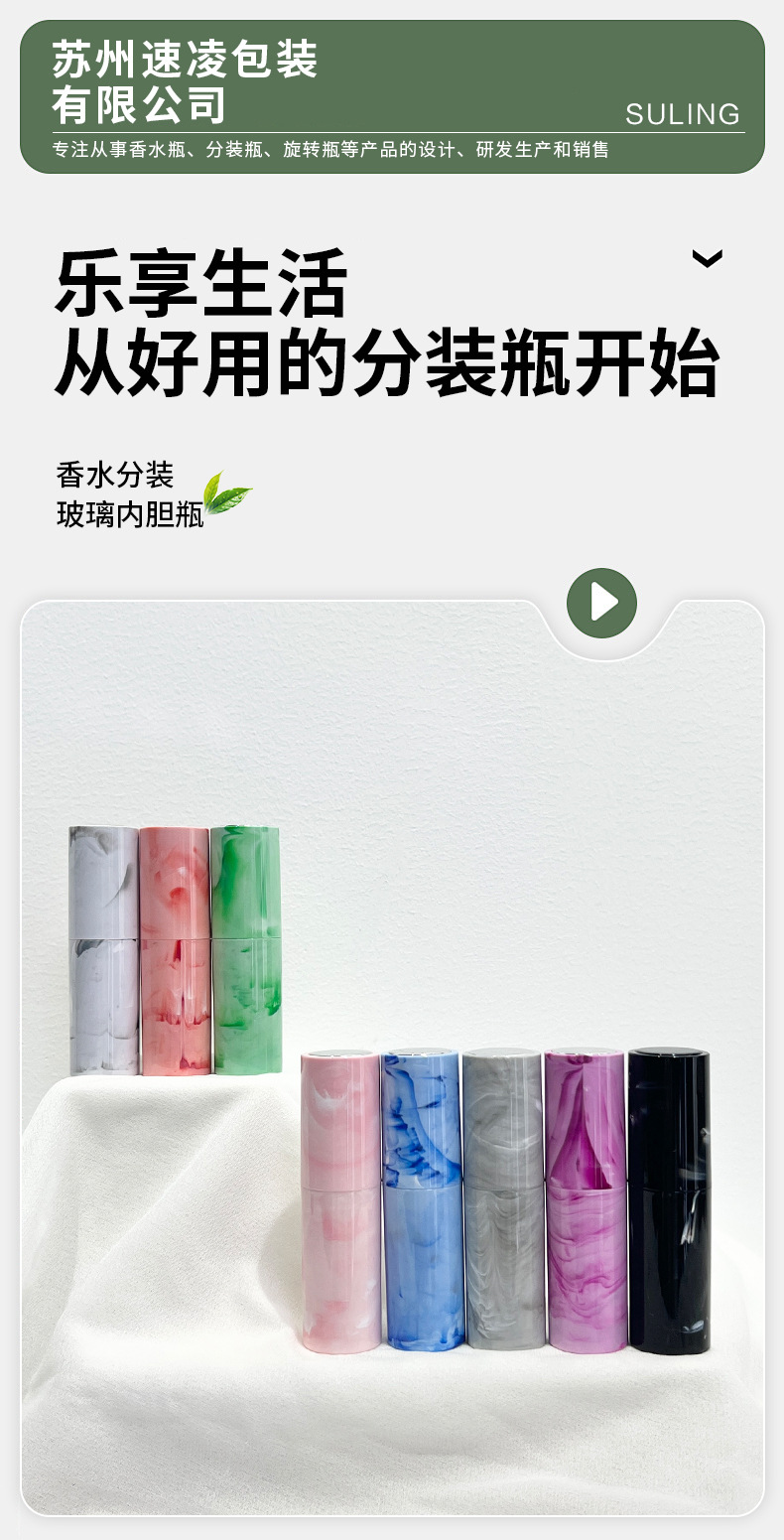 现货5ml大理石纹香水分装瓶旋转瓶旅行便携式玻璃瓶喷雾瓶