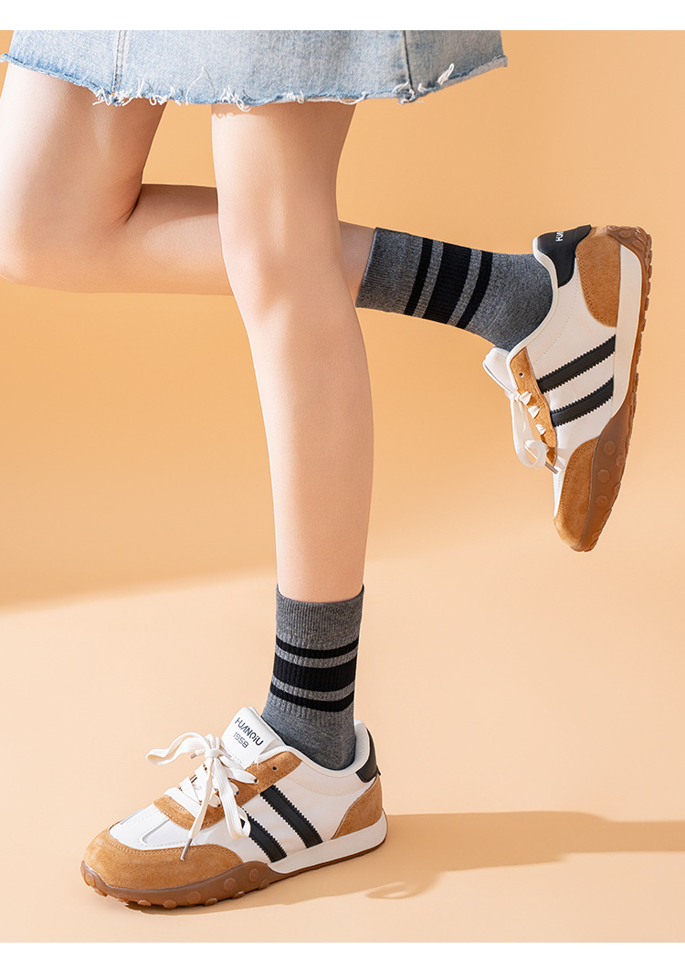 条纹撞色袜子棉袜情侣中筒袜吸汗防臭运动袜无骨长袜学生休闲袜