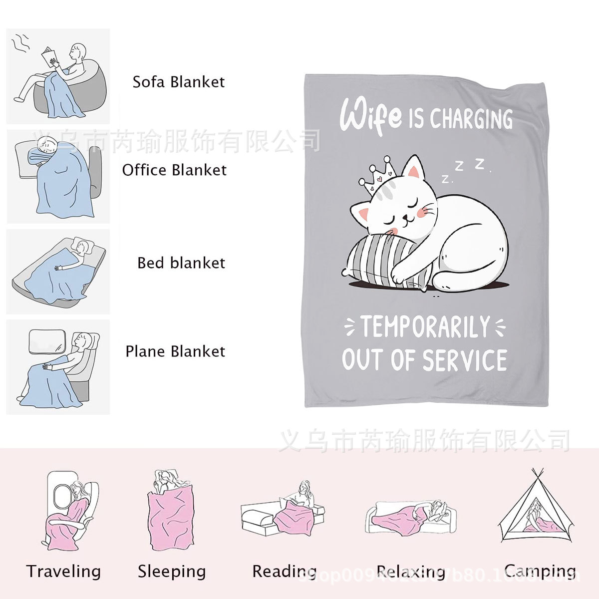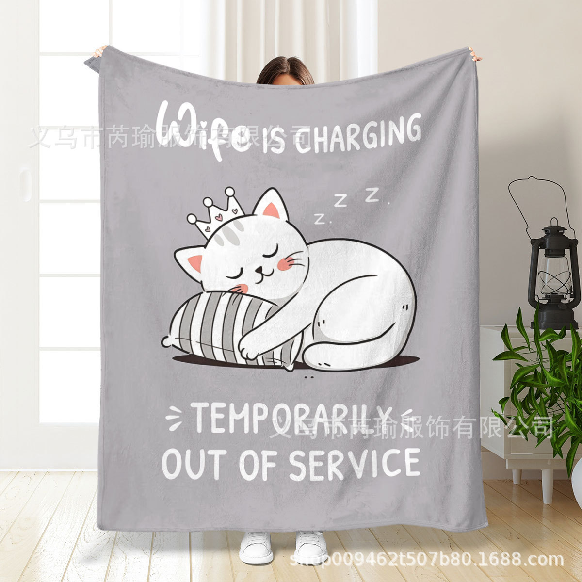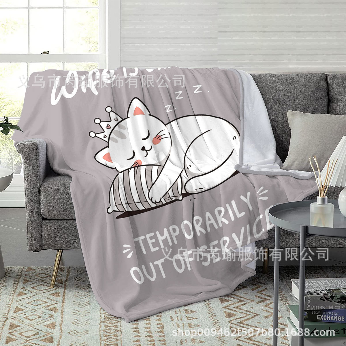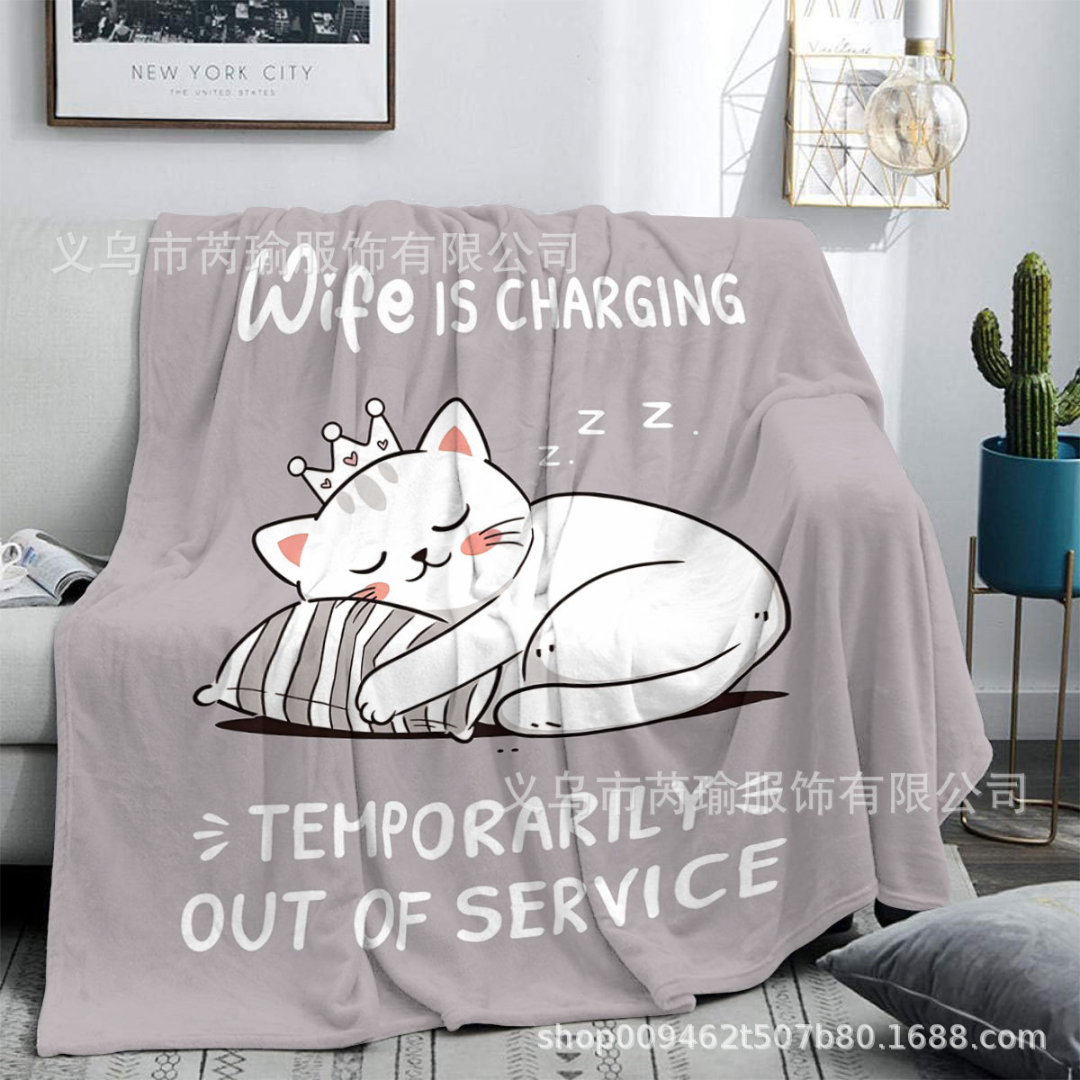 跨境热销猫猫文字给亲人礼物毛毯卡通卧室空调毯宿舍午睡毯批发