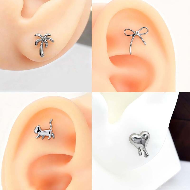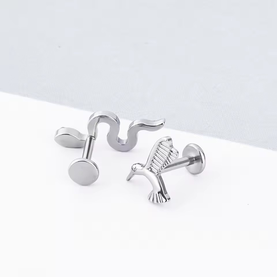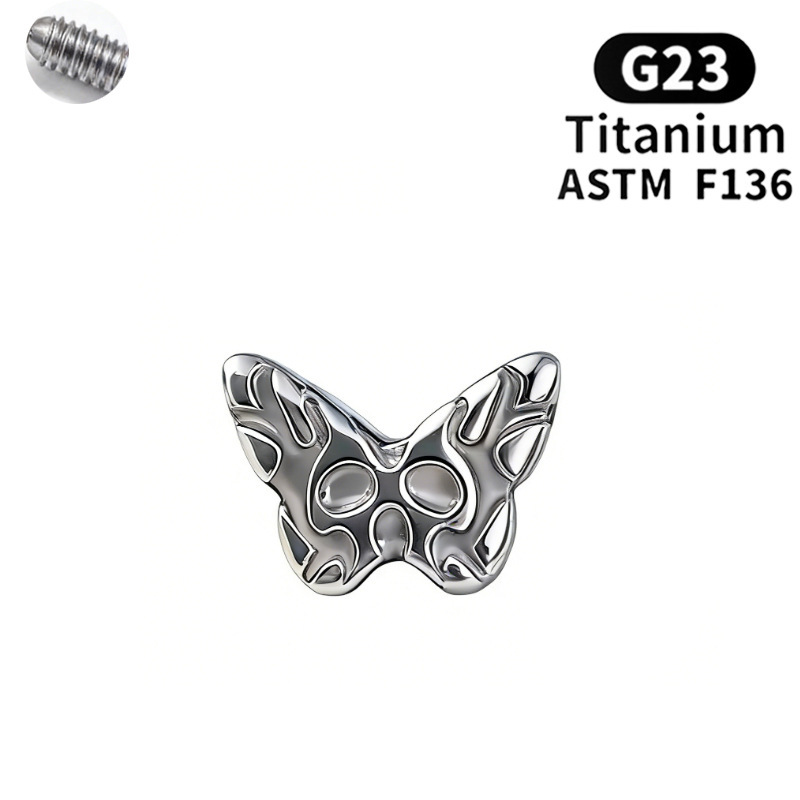 F136钛合金耳钉唇钉耳骨钉猫咪蝴蝶饰品头个性朋克风内牙唇钉配件