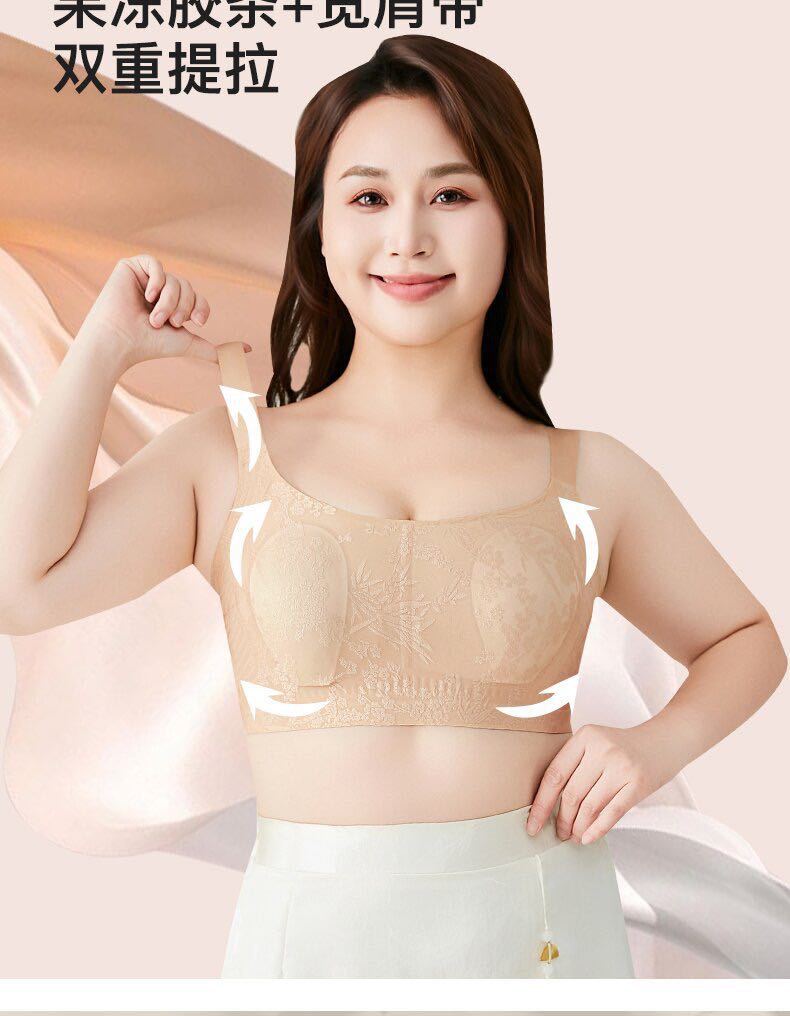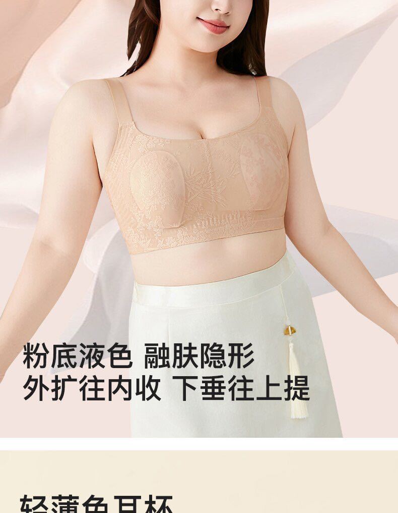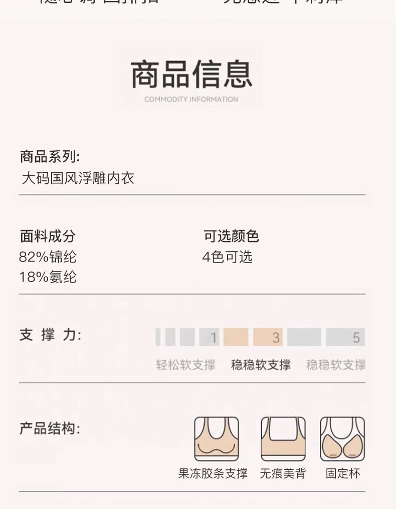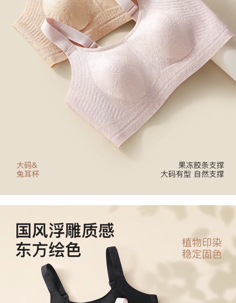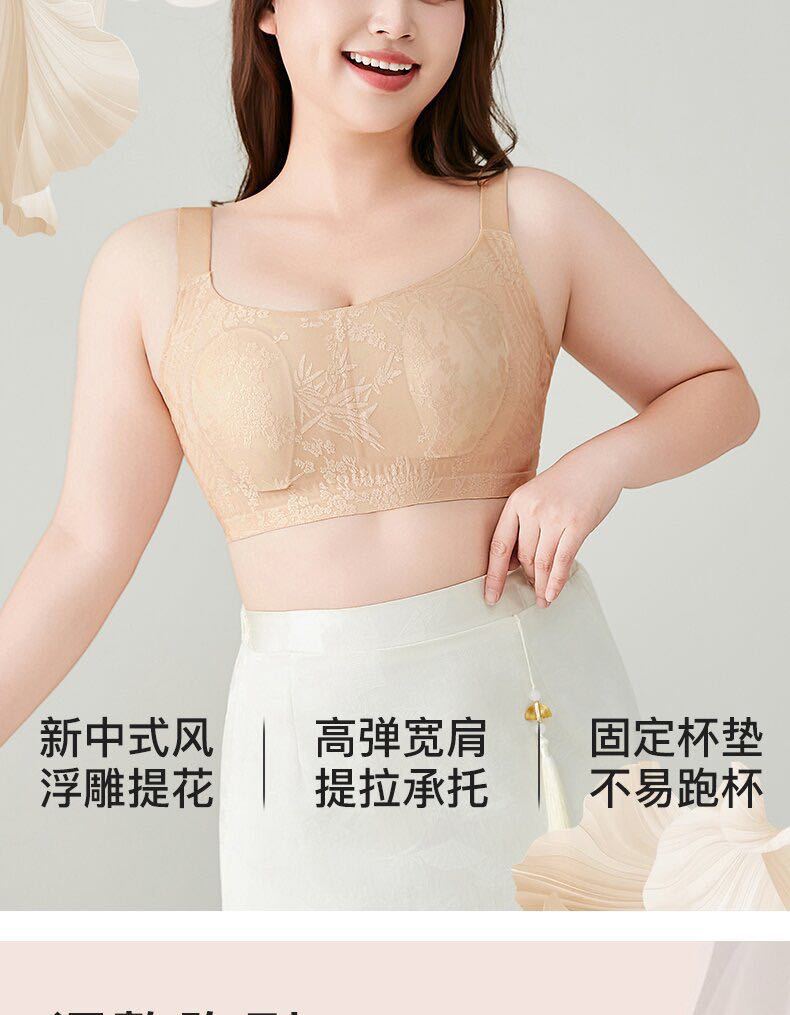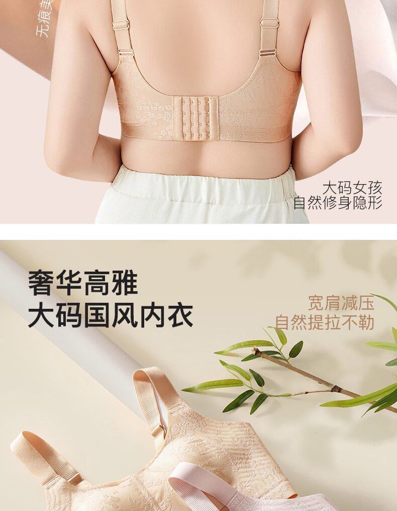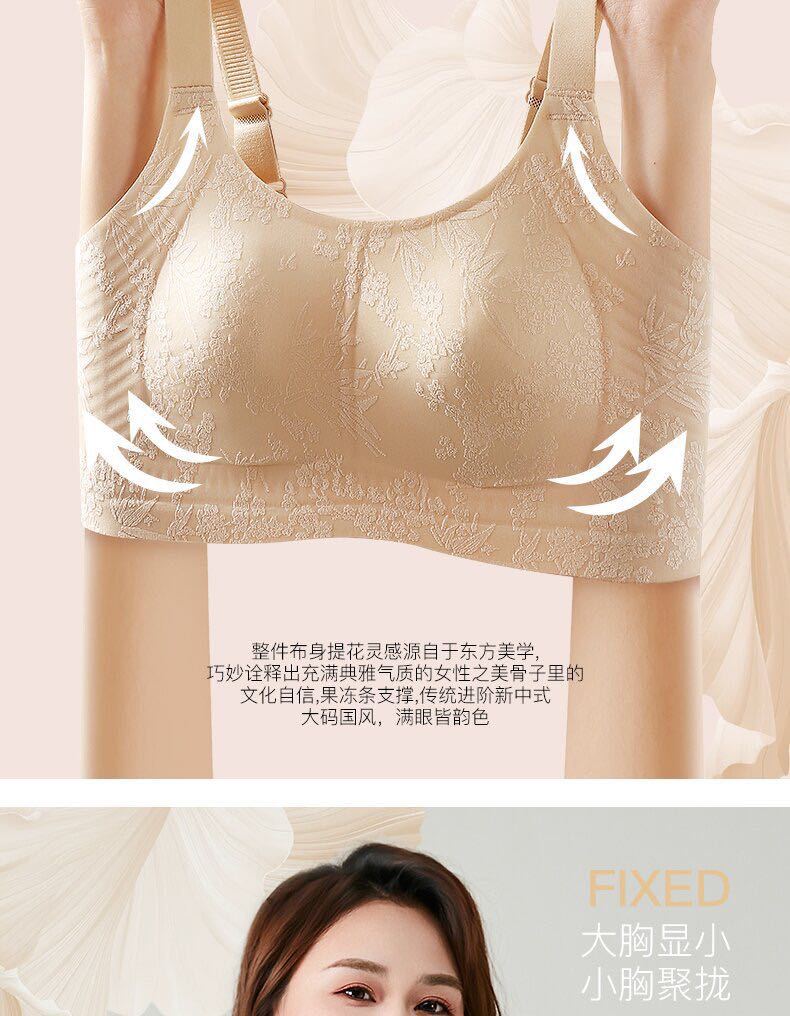 大码国风果冻条无钢圈内衣女 胸大显小固定杯防下垂 无痕女士胸罩