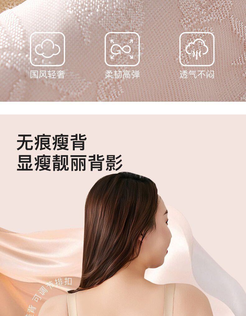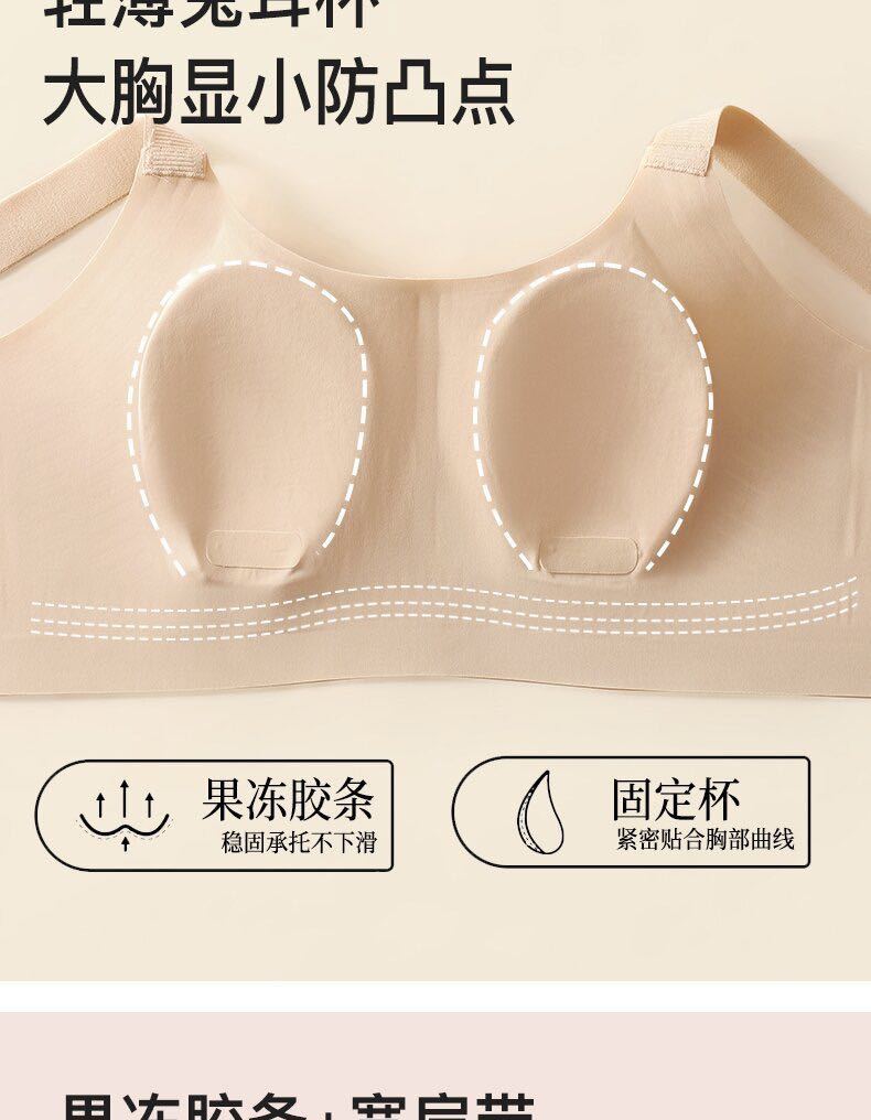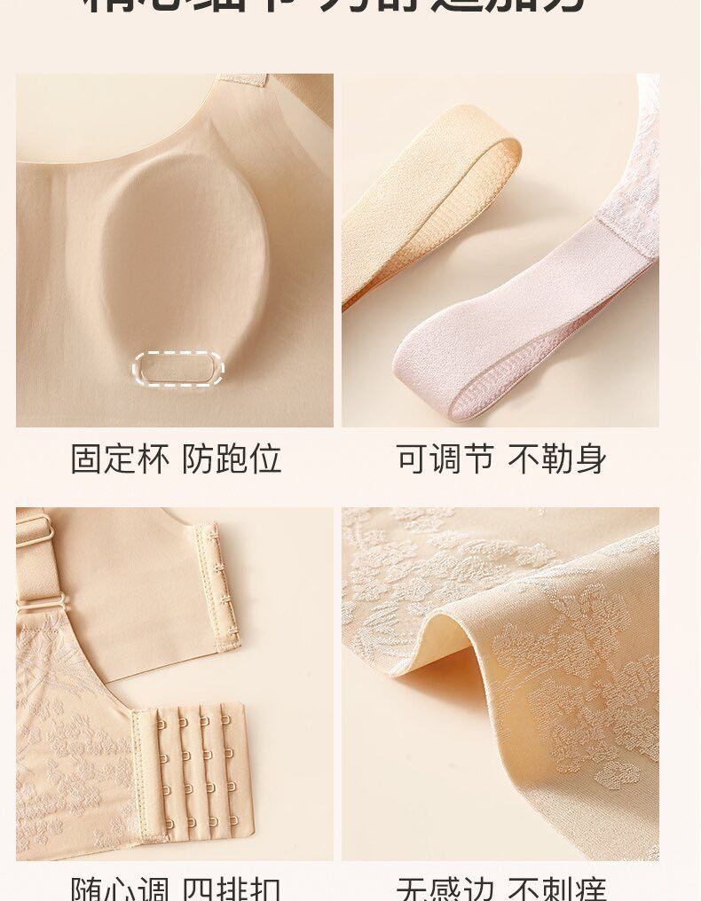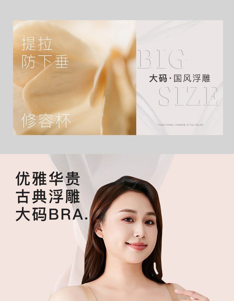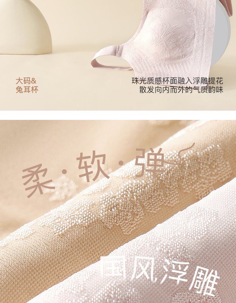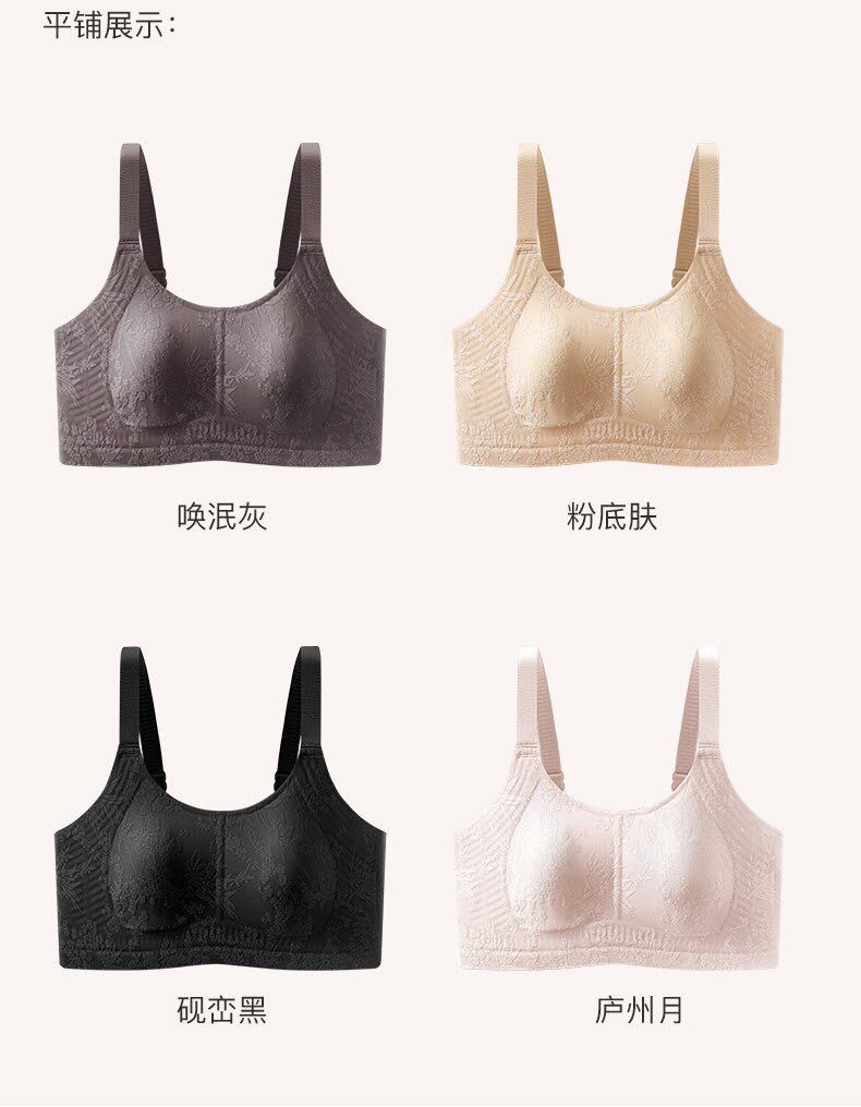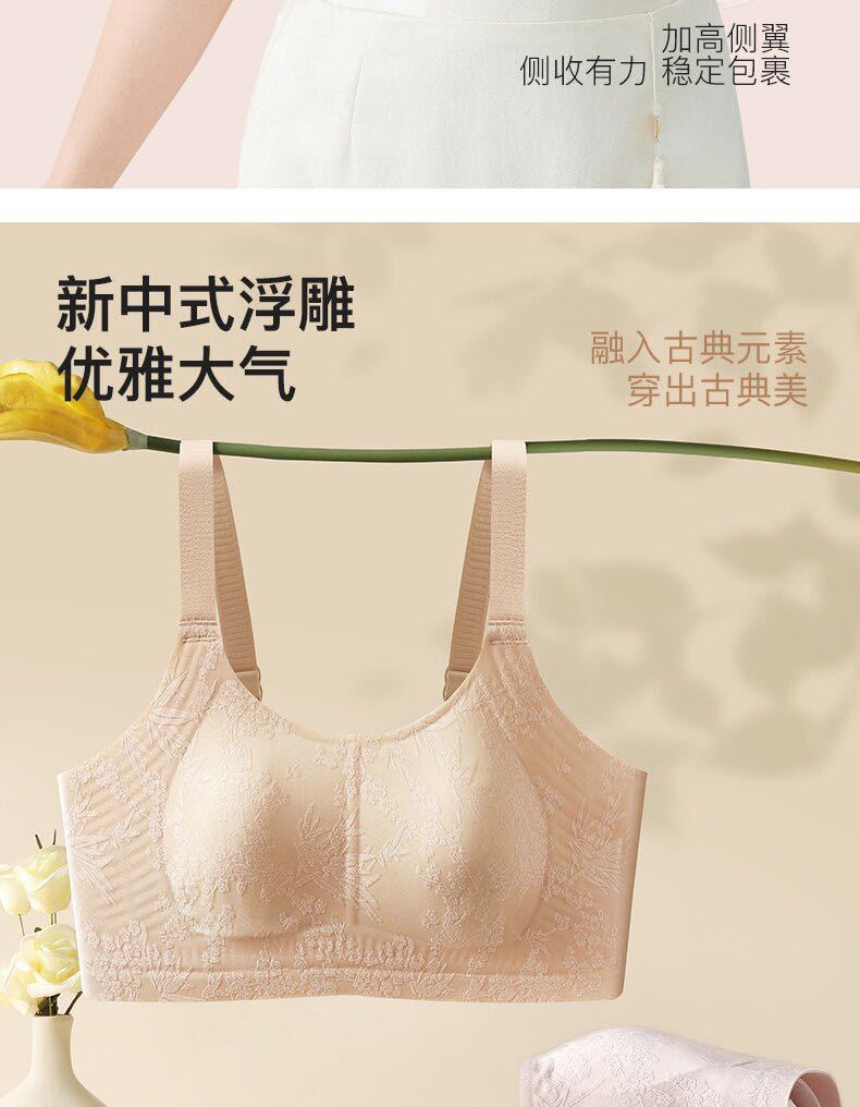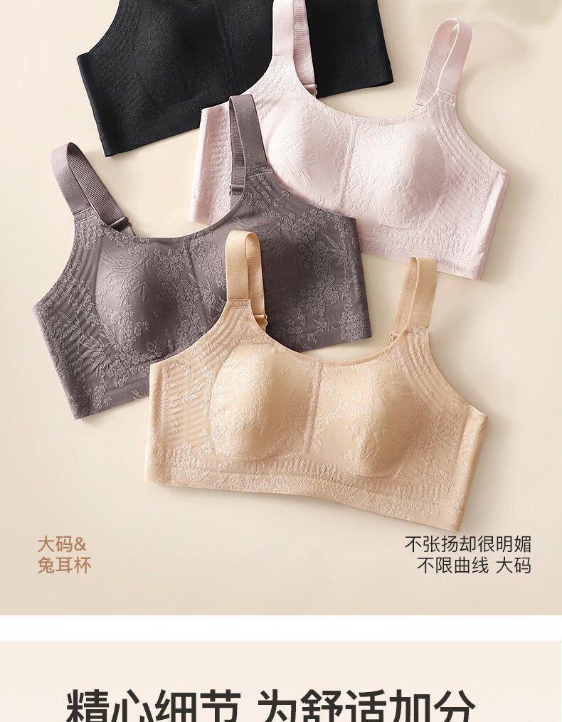 大码国风果冻条无钢圈内衣女 胸大显小固定杯防下垂 无痕女士胸罩