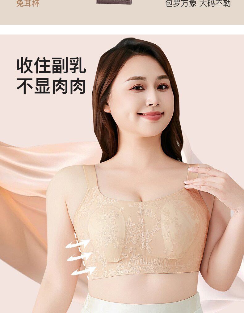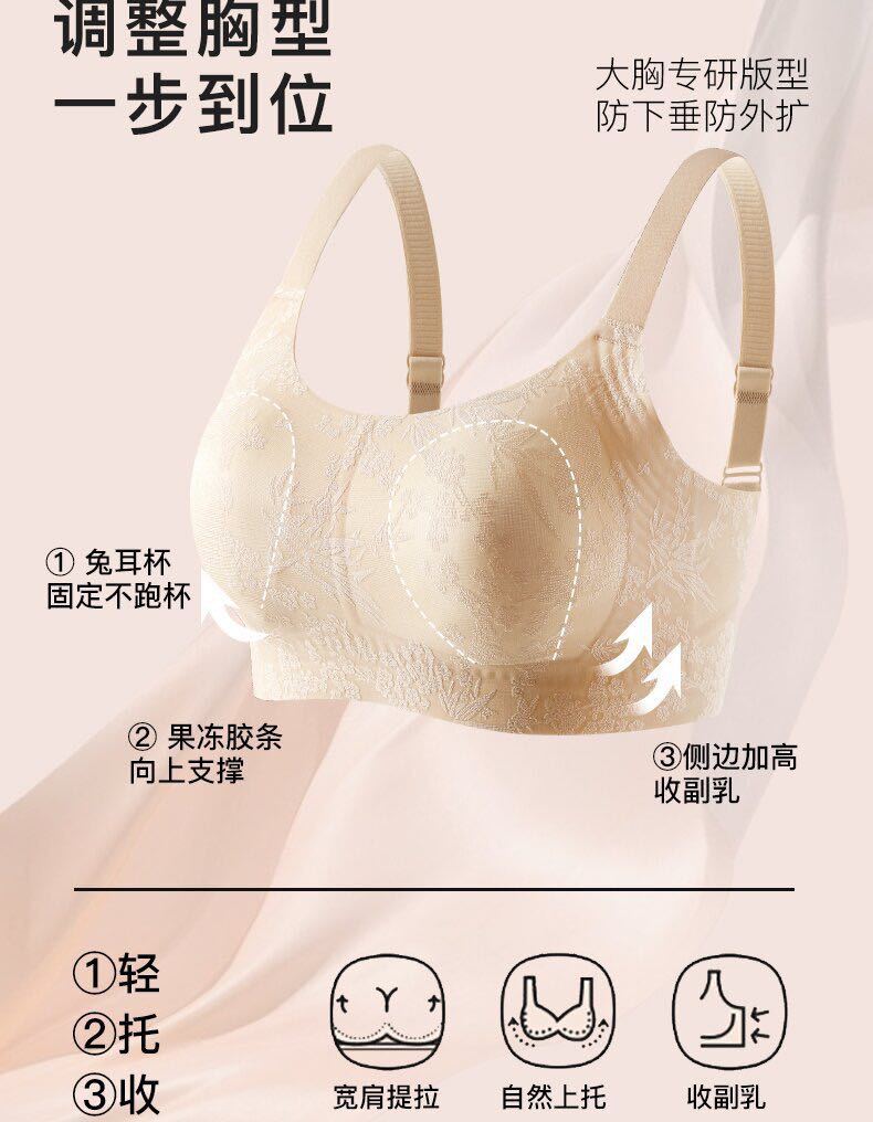 大码收副乳软支撑调整型文胸 前扣提拉聚拢防下垂矫正驼背文胸 反重力无痕外扩深 v 软支撑内衣 大胸显小防下垂收副乳薄款文胸