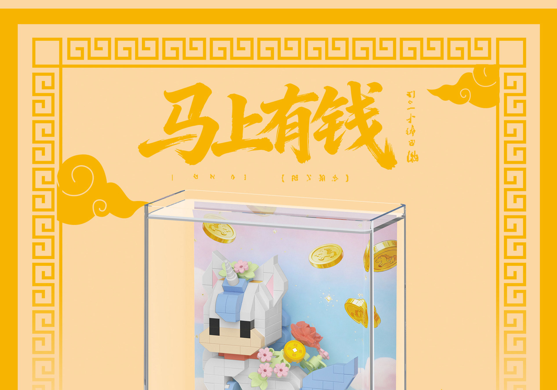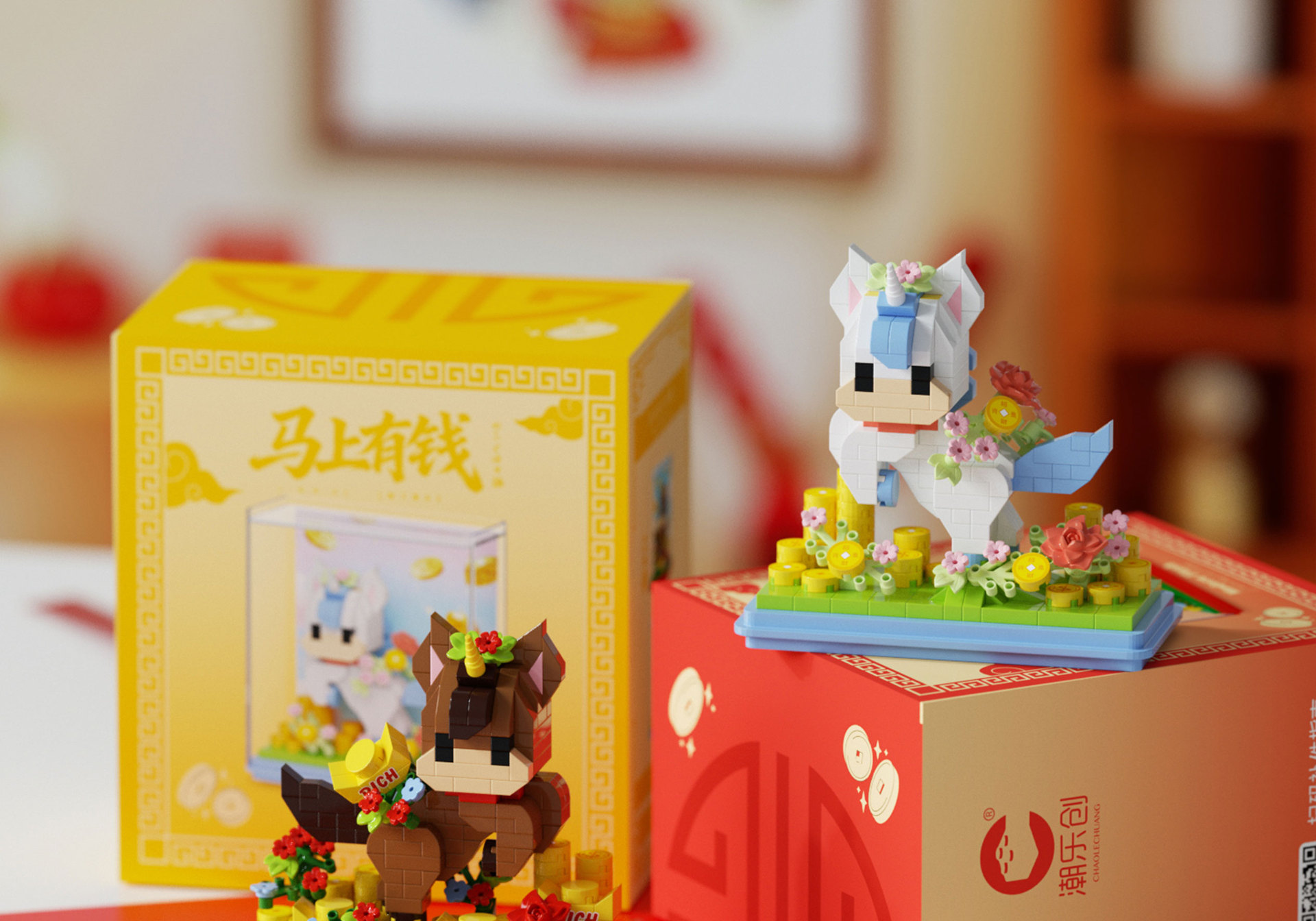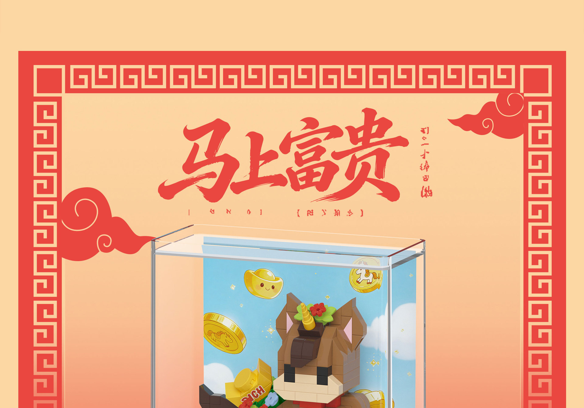 厂家批发2026新款马年新年招财富贵马儿童益智拼装积木摆件礼物
