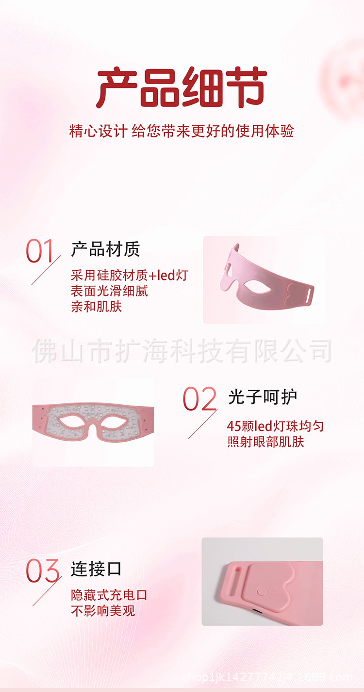 推荐理由:跨境新款红光眼部按摩仪,融合LED七彩光、红外光子与EMS微电流三重技术。红光与红外光深入眼周改善循环、辅助嫩肤,EMS微电流缓解疲劳、紧致眼肌。一机多效,针对黑眼圈、细纹及眼袋问题,每天10分钟居家