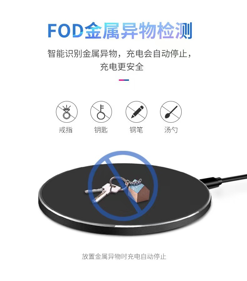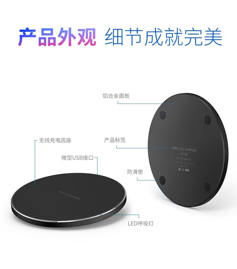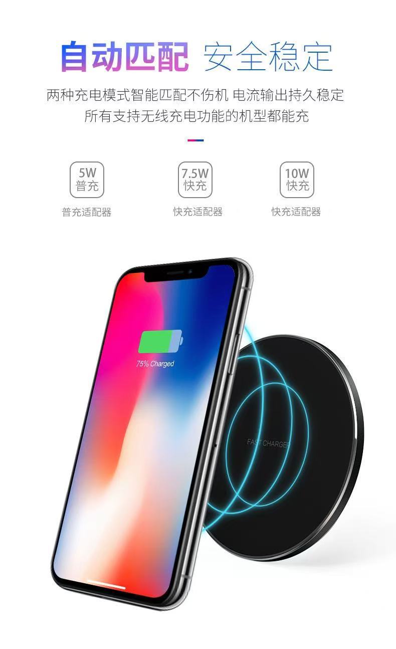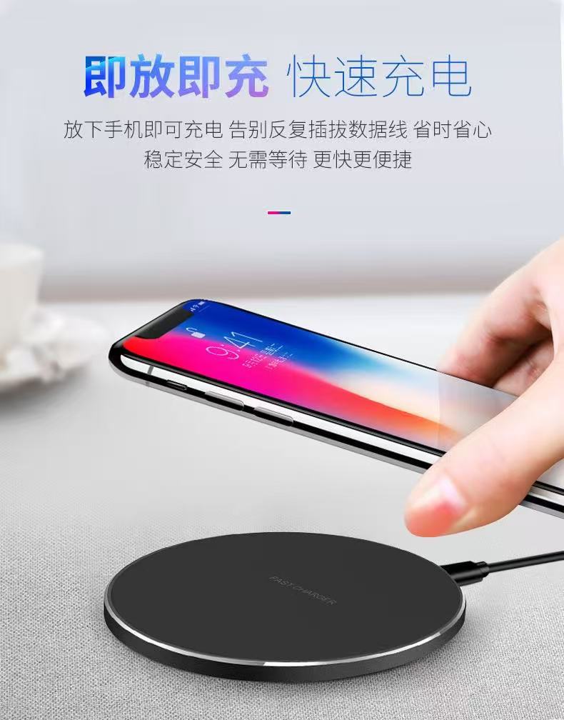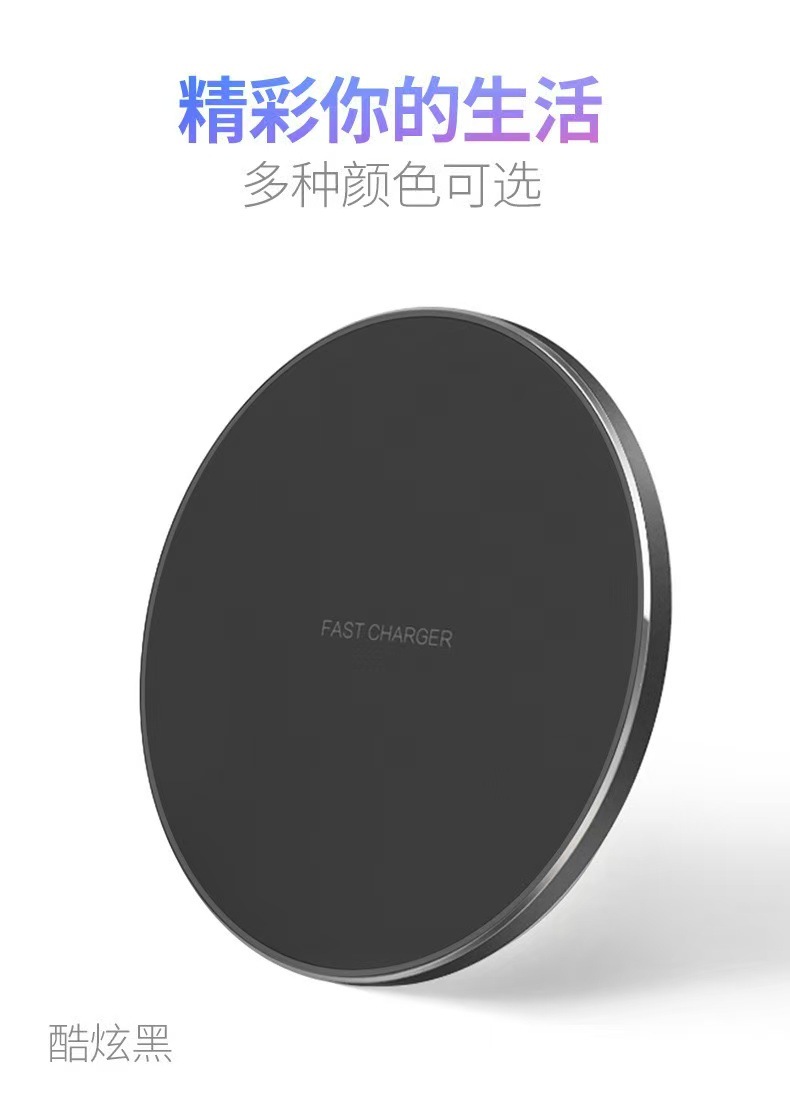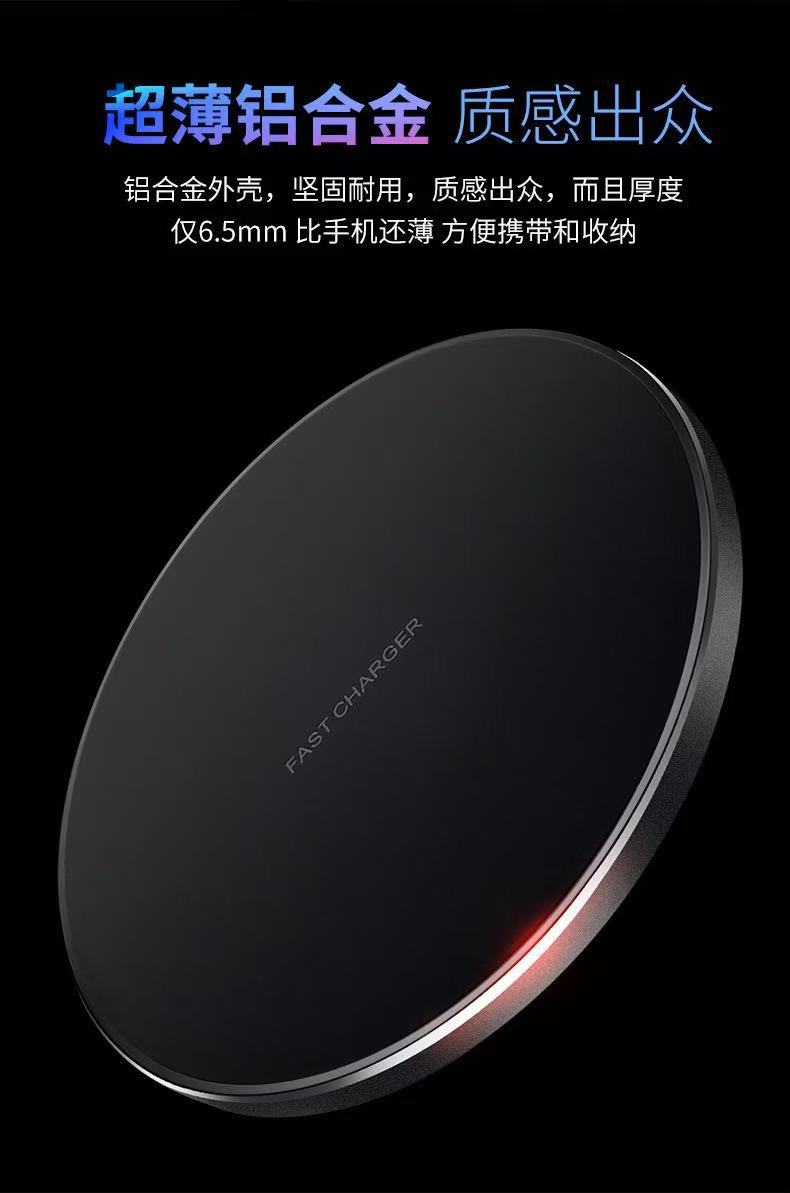 15W圆形无线充电器30W/50W铝合金桌面圆盘无线充手机充电器快充